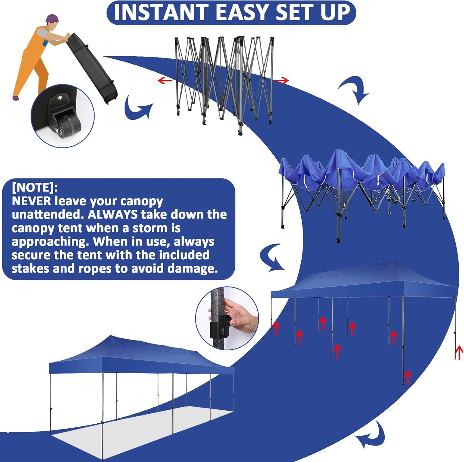 COBIZI 10x30 Pop Up Canopy Without Sidewall,Heavy Duty Canopy UPF 50+ All Season Wind Waterproof Commercial Outdoor Wedding Party Tents for Parties Canopy Gazebo with Roller Bag(10 x 30 ft Dark Blue)