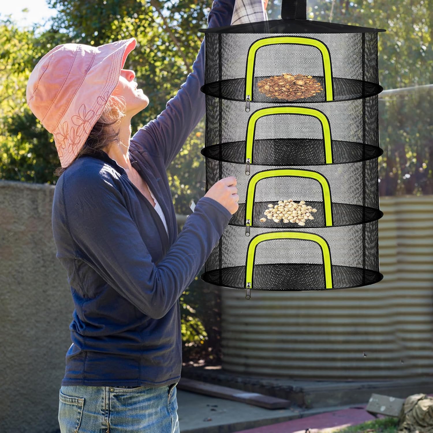 - Size and Usage: There are 2, 4, 6 and 8 layers herbs drying racks for selection, with the 4 layer measuring 23.6 x 23.6 x 31.5 inches. The multi layer separated drying nets provide quick drying of plants, flowers, buds, bulbs, fishes, weeds, clothes, jerky, meat, food, basil, vanilla, onion, garlic, cinnamon, nuts, and etc