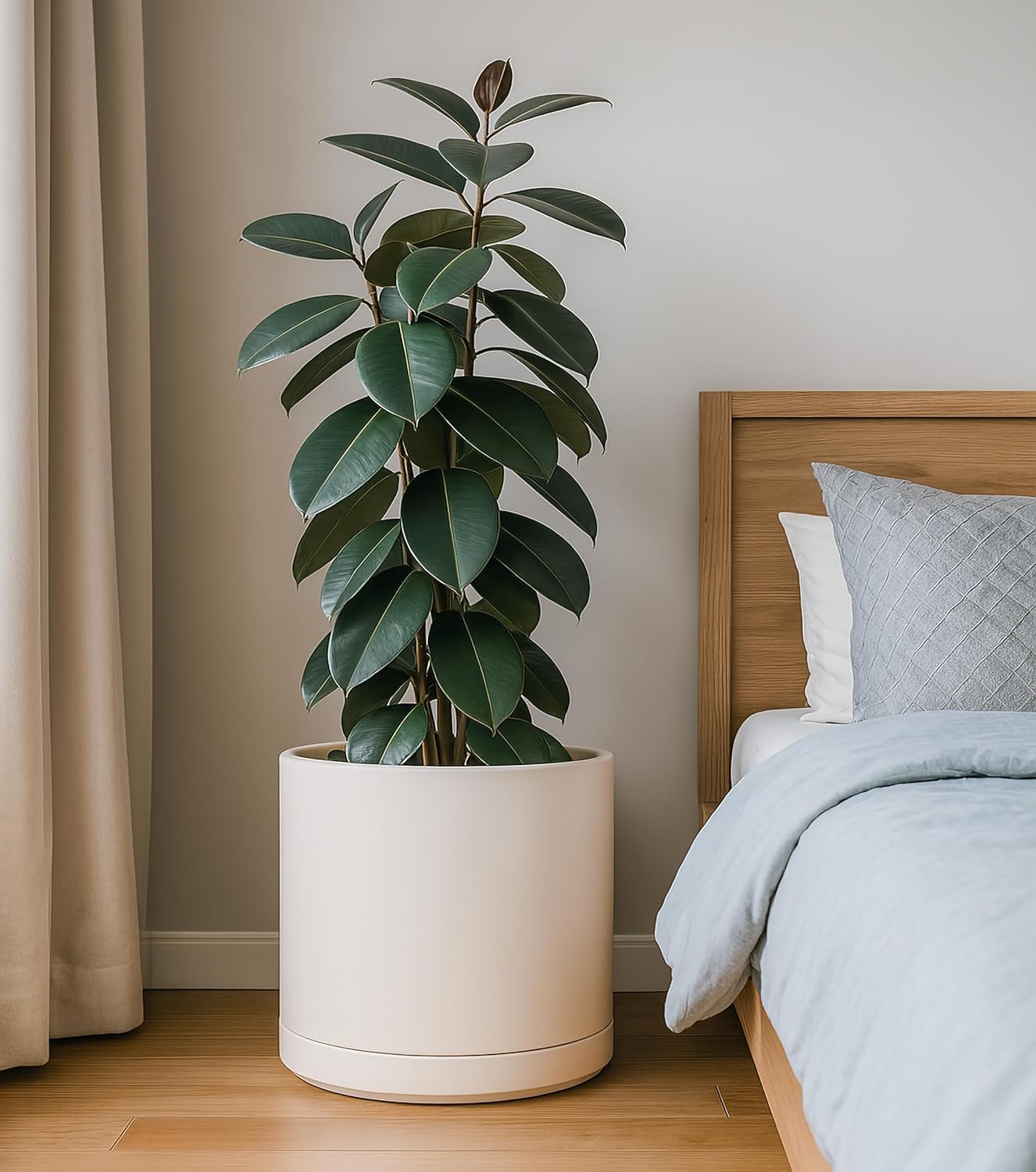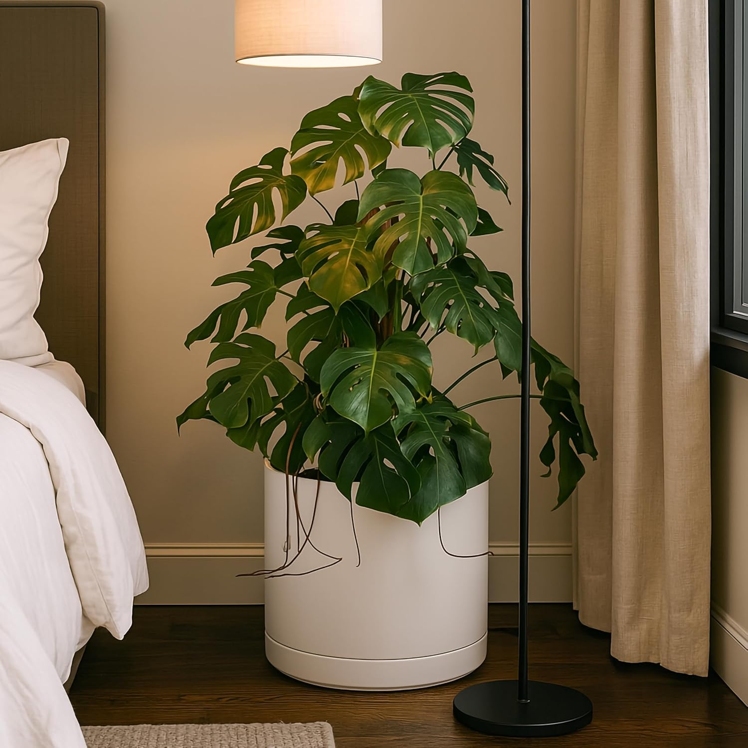- Simple, elegant, and modern cylindrical straight round planter pot with saucer and drainage hole.