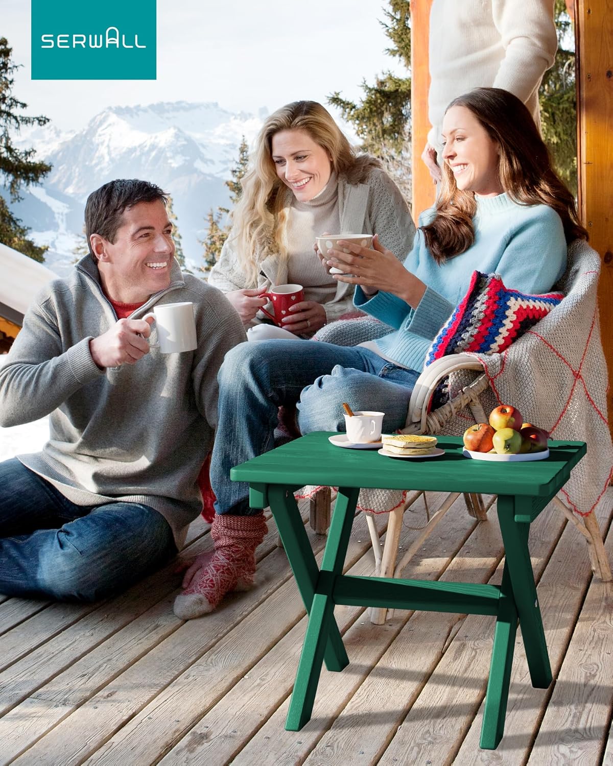 SERWALL Portable Folding Outdoor Side Table - Adirondack Style, HDPE Material, No Assembly Required, Outside End Table for Patio, Porch, Deck, Pool, Green
