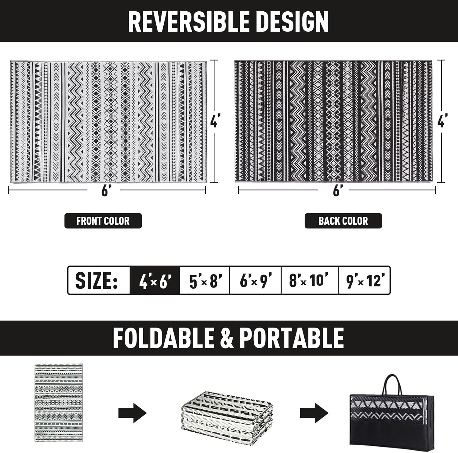 • Portable & Durable: This outdoor plastic rug with seams can be rolled or folded into a compact size and comes with a carrying bag for easy portability. Perfect for outdoor activities, picnics, sunbathing, and RV road trips. The heat-sealed edges prevent wear and tear, withstanding any environment, traffic, or scratches