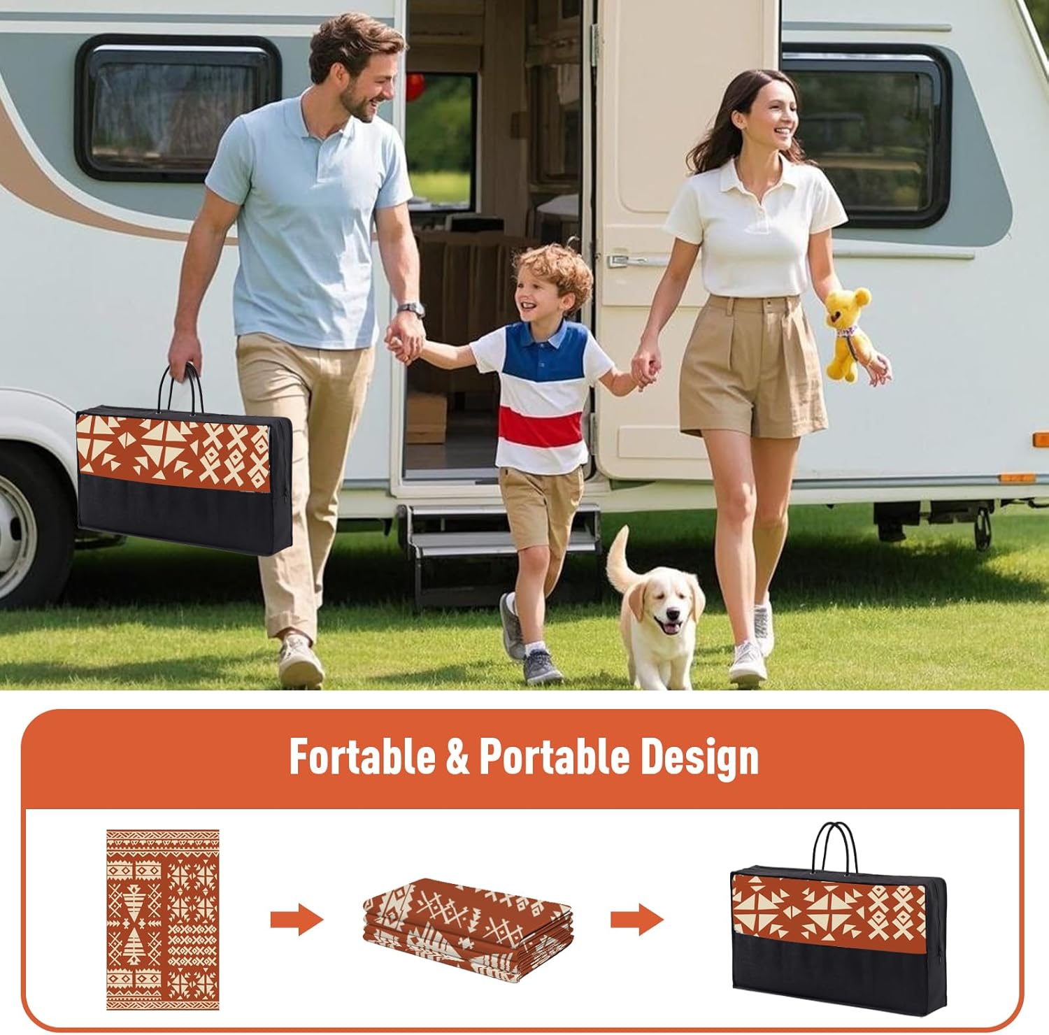 - Reversible Design: This double-sided patio rug features beautiful patterns on both sides, allowing you to quickly flip it over and instantly refresh your patio, porch, backyard, deck, RV campsite, or any outdoor space. A simple way to transform your style effortlessly