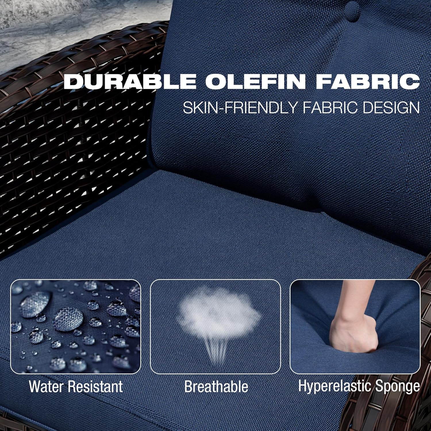 - Premium Material: The swivel chair frame is made of powder-coated steel, capable of supporting up to 300 pounds. The cushion fabric is crafted from premium OLEFIN material, which is fade-resistant and splash-proof. It ensures a sturdy and secure foundation, built to withstand the test of time and use