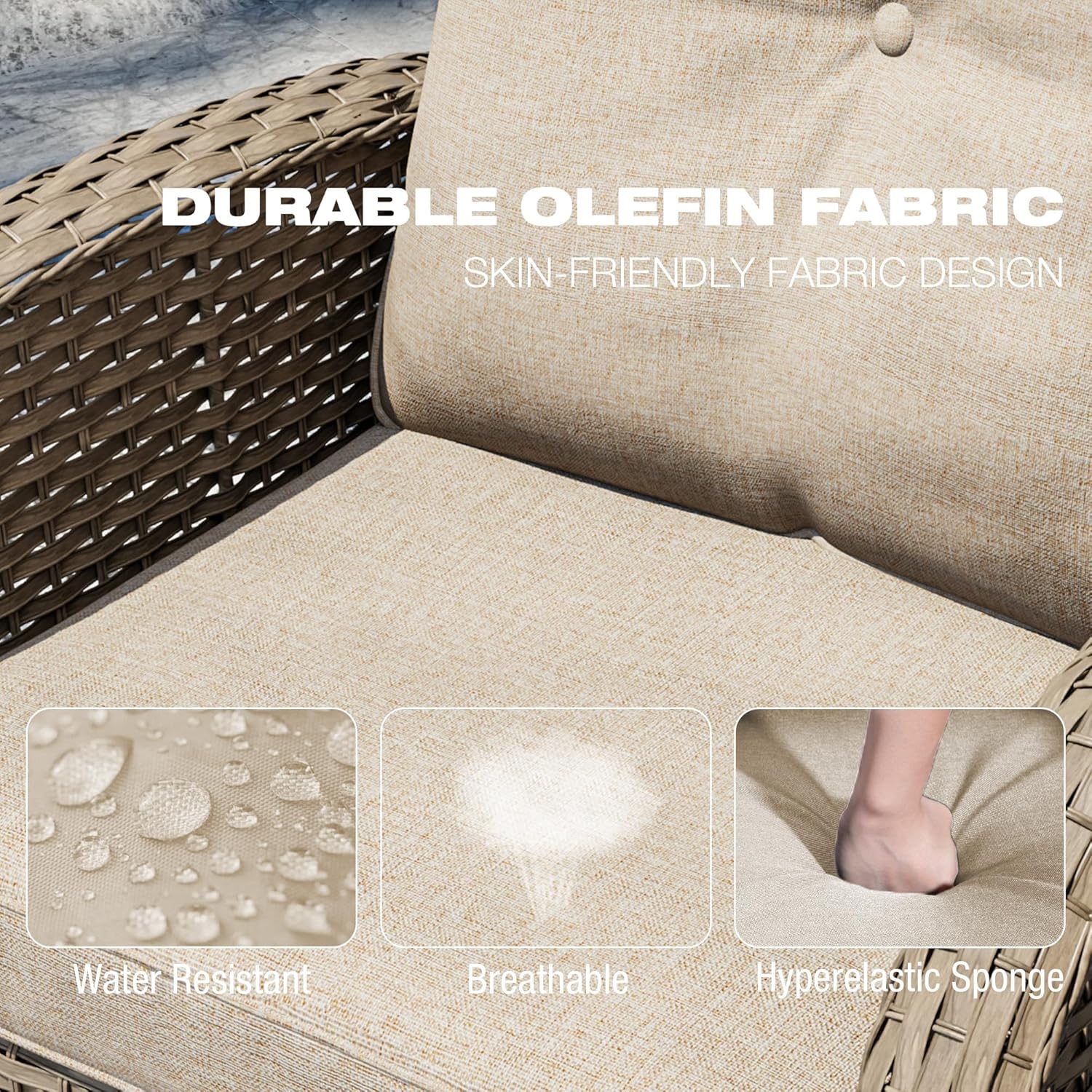 - Smooth 360°Swivel & Glide: The patio swivel chair features a stable and secure round base design, allowing for effortless 360-degree rotation. It lets you easily adjust your position while soaking up the sun, offering ultimate relaxation. The swivel function lets you turn to enjoy the surrounding views, while the rocking motion adds a soothing, gentle swing. Perfect for unwinding or chatting with friends