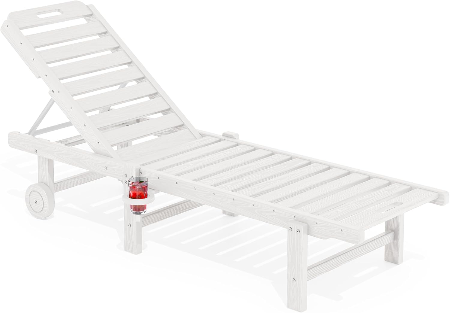 SERWALL Patio Chaise Lounge, 78" Length Outdoor Lounge Chair with 5 Positions Adjustable Backrest, HDPE Lounge Chair with Rolling Wheels & Cup Holder for Poolside, Beach, Garden, White