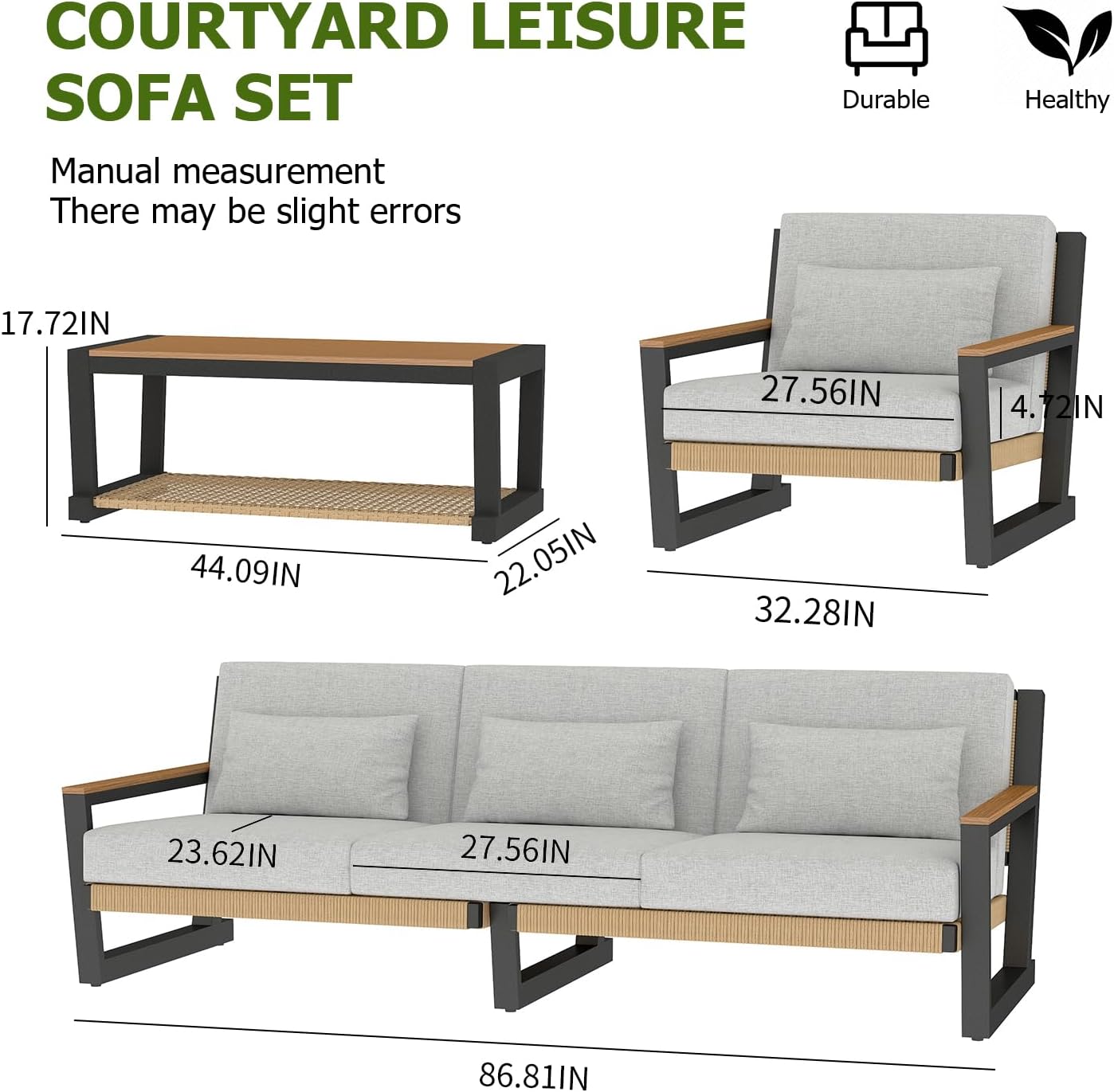 - Comfortable Ergonomic Design with Wide Seats and Armrests:Each chair in this outdoor furniture set features wide armrests and seats for optimal comfort. The thick cushions ensure comfort even for extended sitting. The cushions are removable for easy cleaning. Additionally, a small lumbar pillow is included, providing extra support and relaxation during use.