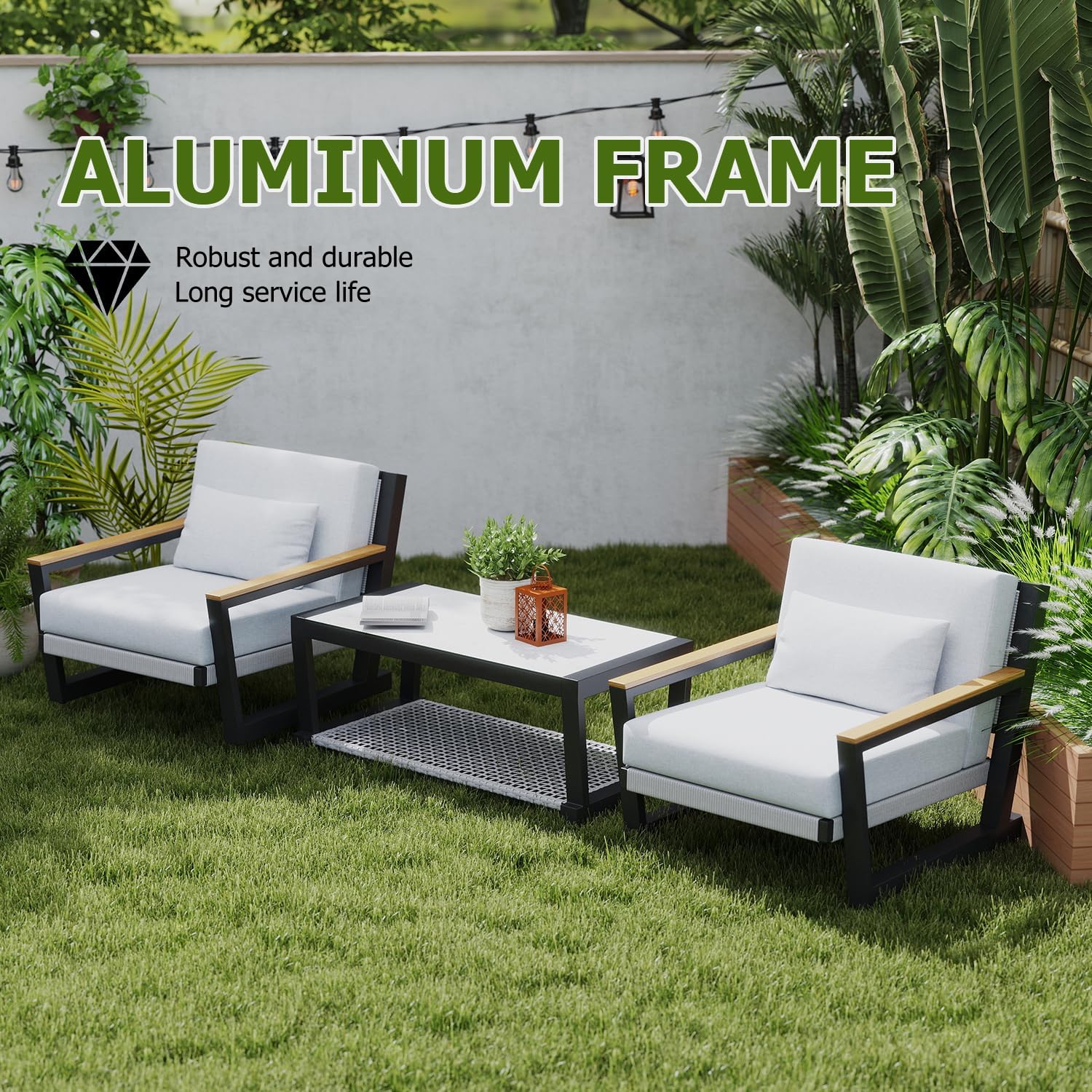 - Comfortable Ergonomic Design with Wide Seats and Armrests:Each chair in this outdoor furniture set features wide armrests and seats for optimal comfort. The thick cushions ensure comfort even for extended sitting. The cushions are removable for easy cleaning. Additionally, a small lumbar pillow is included, providing extra support and relaxation during use.