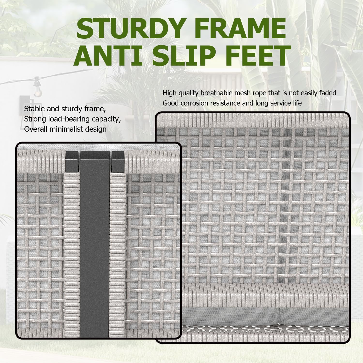 - Weather-Resistant & Durable: Crafted with polypropylene fiber and high-density PE webbing, this Aluminum Patio Furniture Set resists UV rays, water, and tears. The sturdy woven design supports up to 500lbs, ensuring long-lasting performance in any outdoor environment.