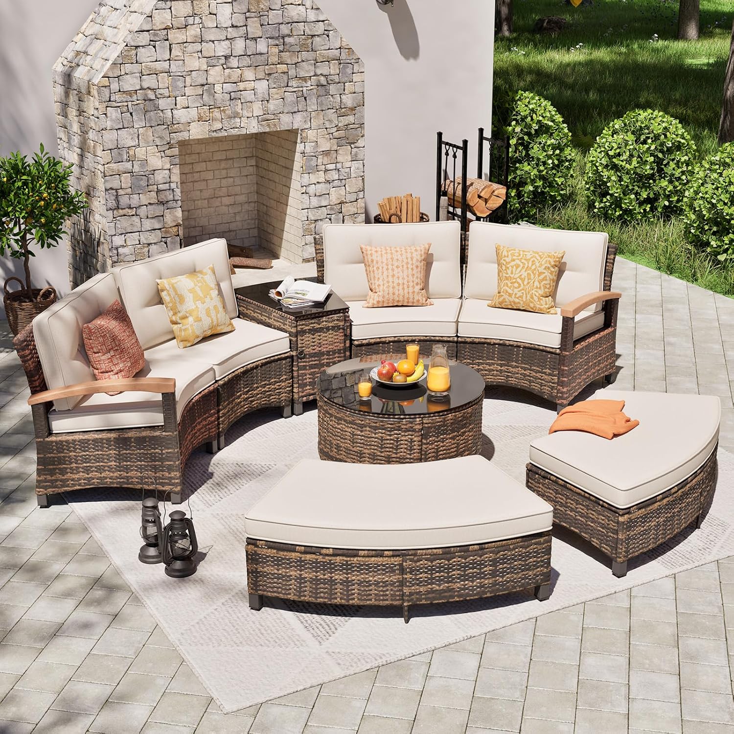 - Unique Half-Moon Design: This half-moon patio furniture set features a stylish semi-circular lounge with four curved sofas and two Half-Moon Ottomans, perfect for outdoor gatherings on your balcony, patio, or poolside
