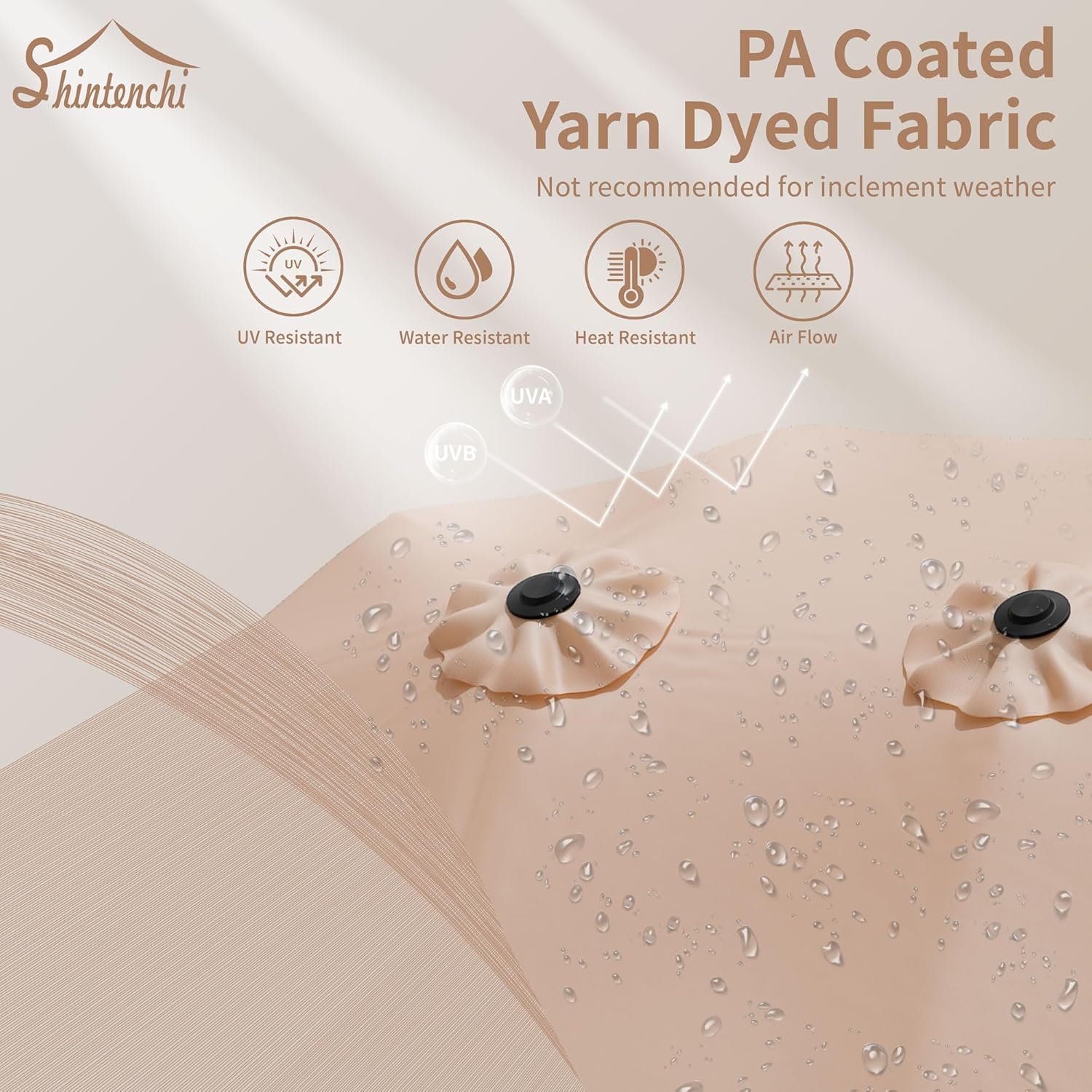 - Extra-Large Shade Coverage:15ft double-sided design creates expansive shading area, comfortably accommodating people gathering. Ideal sun protection solution for patios, poolside areas, and commercial spaces