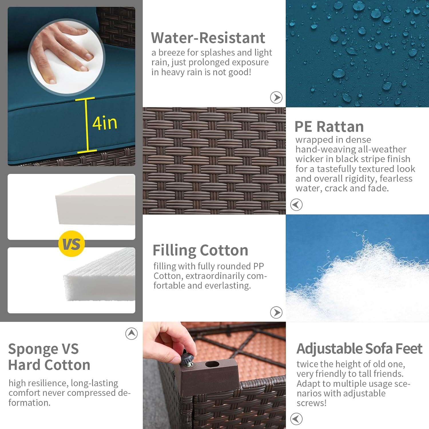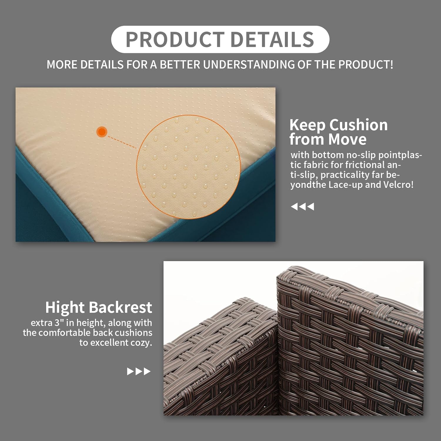 - Comfortable and Non-slip: seat cushions(4 inches) with high resilience sponge and bottom array anti-slip dotted fabric, match up plump back cushions with water-resistant, color retention fabric covers for lasting appeal with outdoor patio furniture, which is extraordinarily comfortable and everlasting