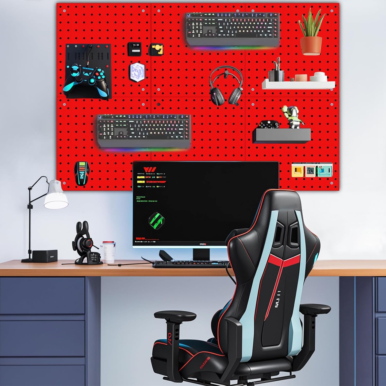 6 Pack Steel Peg Board,Universal 1/8 and 1/4 Pegboard Accessories,Ideal for Garage Tool Storage, Office Organization, Craft Room, Kitchen etc. (Red, 6-12X12)