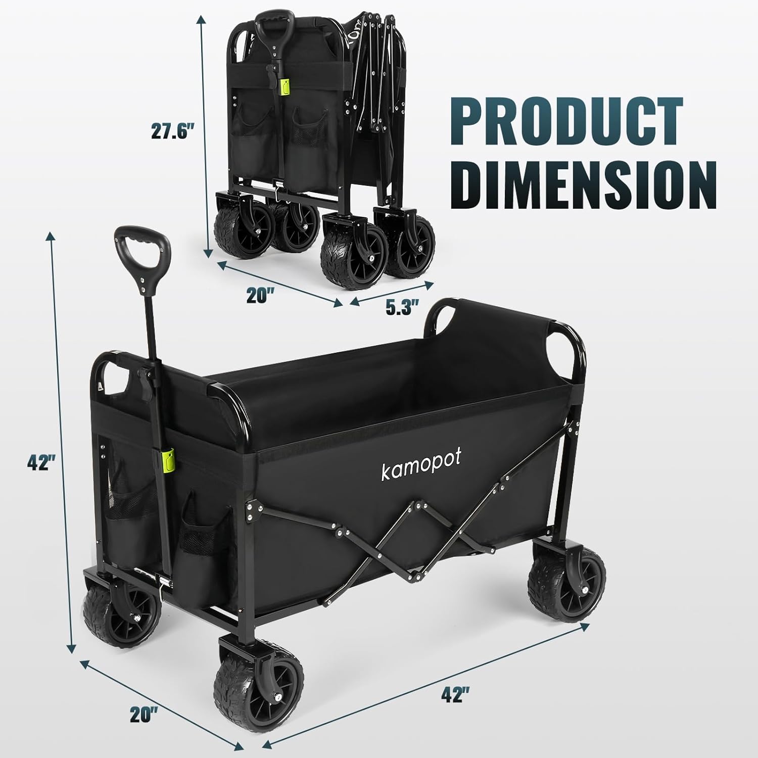 - DURABLE FOR YEARS: Upgraded version with 3-tier extendable pulling handle, reinforced steel frame & cloth basket, which further strengthens the reliability & durability of the wagon. Strong & portable, easy to use. A must-have & long-lifespan wagon for all kinds of activities, sports, camping, beach, grocery shopping, garden...etc.