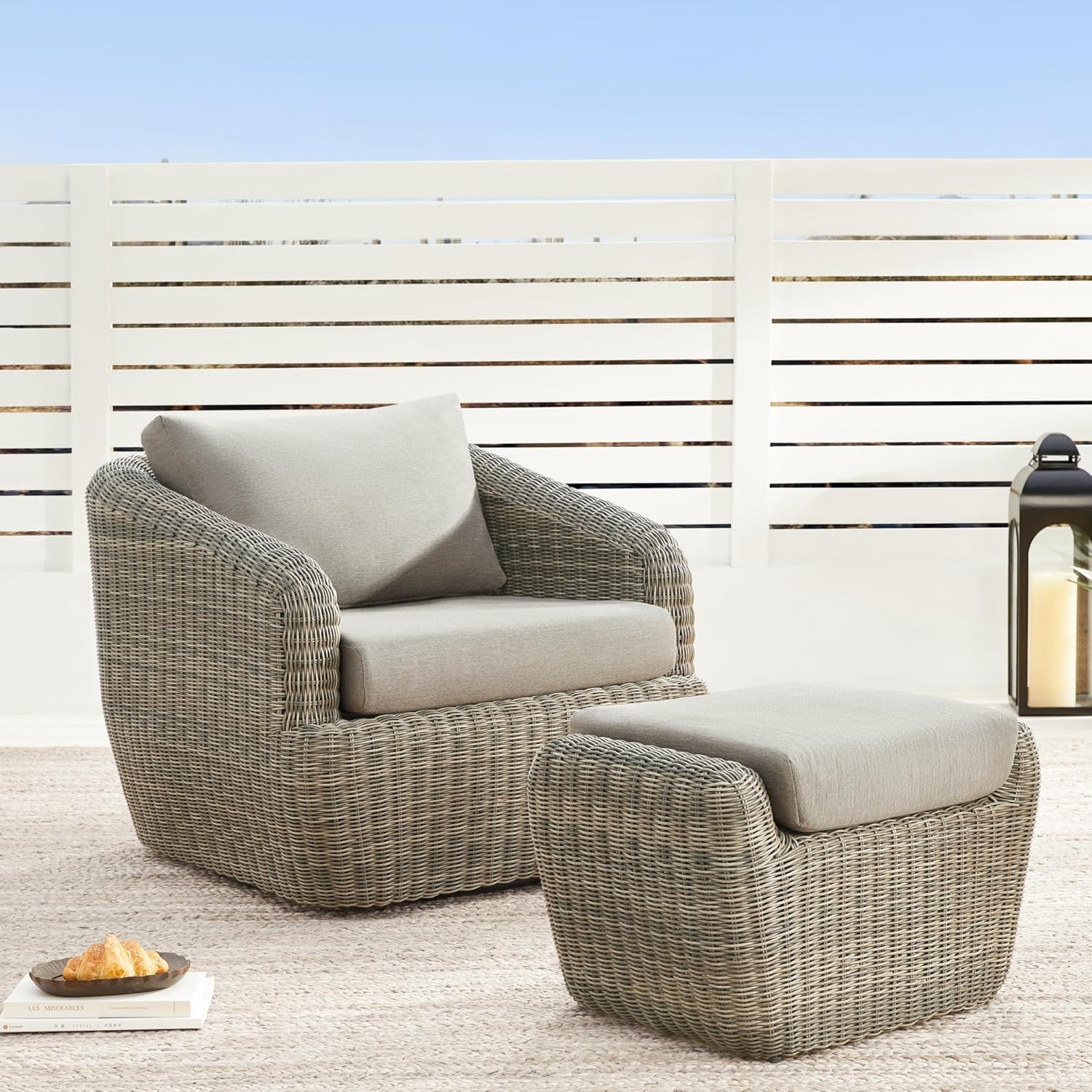 - Casual Style Chair and Ottoman- Handwoven by skilled artisans, this swivel chair exudes a relaxed vibe perfect for cozy outdoor settings. Crafted with all-weather resin wicker and a sturdy steel frame, adds natural charm to your patio, sunroom, or deck.