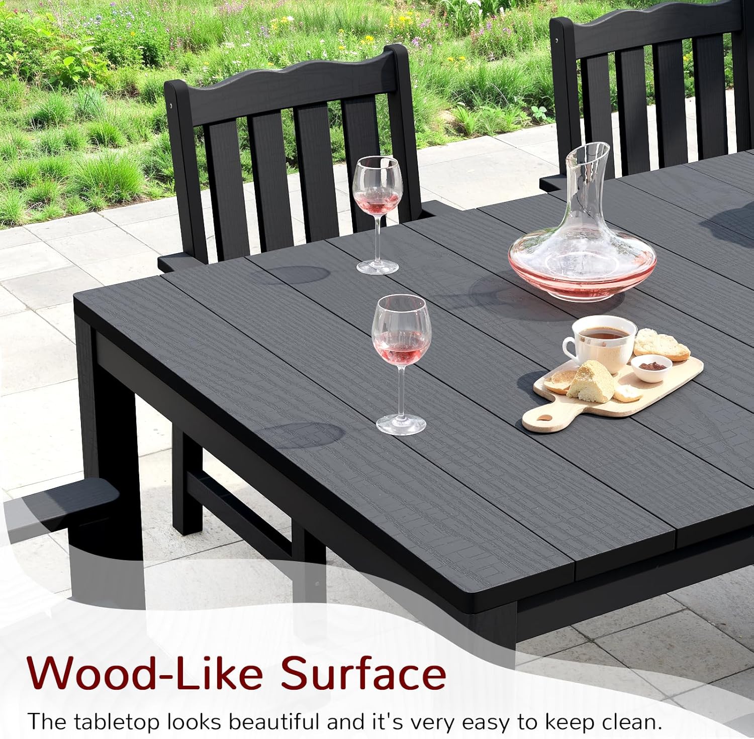 Stoog 7 Pieces Patio Dining Sets, All-Weather HIPS & Aluminum Outdoor Dining Table with Umbrella Hole, Patio Furniture Set Include 1 Table and 6 Chairs, for Backyard, Garden and Deck, Black