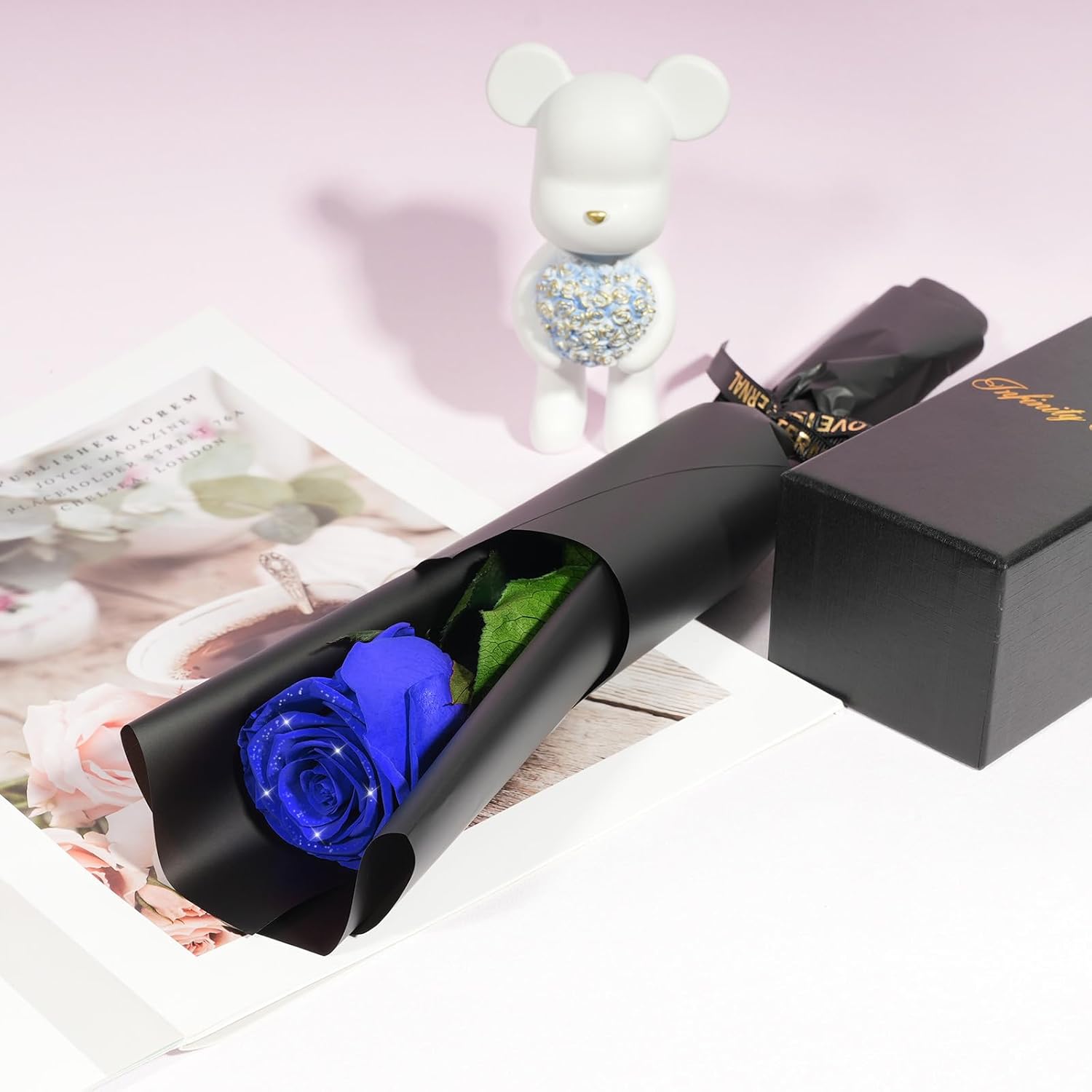 - Eternal Real Single Rose with Stems: Preserved flowers rose with long stems are 30 to 32 cm(11.81 to 12.6 in) length, the roses have a diameter of 5 to 6 cm(1.97 to 2.36 in) and some of their thorns have been removed to avoid injury. The roses are packaged in an exquisite and premium box so you don't have to spend extra time and money on packaging. An ideal gift for women!Give her a rose, it represents your only and special love for her