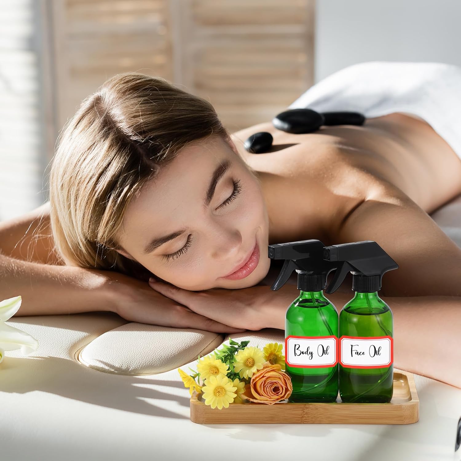 Norme 12 Pcs 8 oz Glass Spray Bottles with Funnels and Labels Refillable Cosmetic Empty Spray Bottles with Sprayer Containers for Essential Oil Cleaning Solutions(Green,Classic)