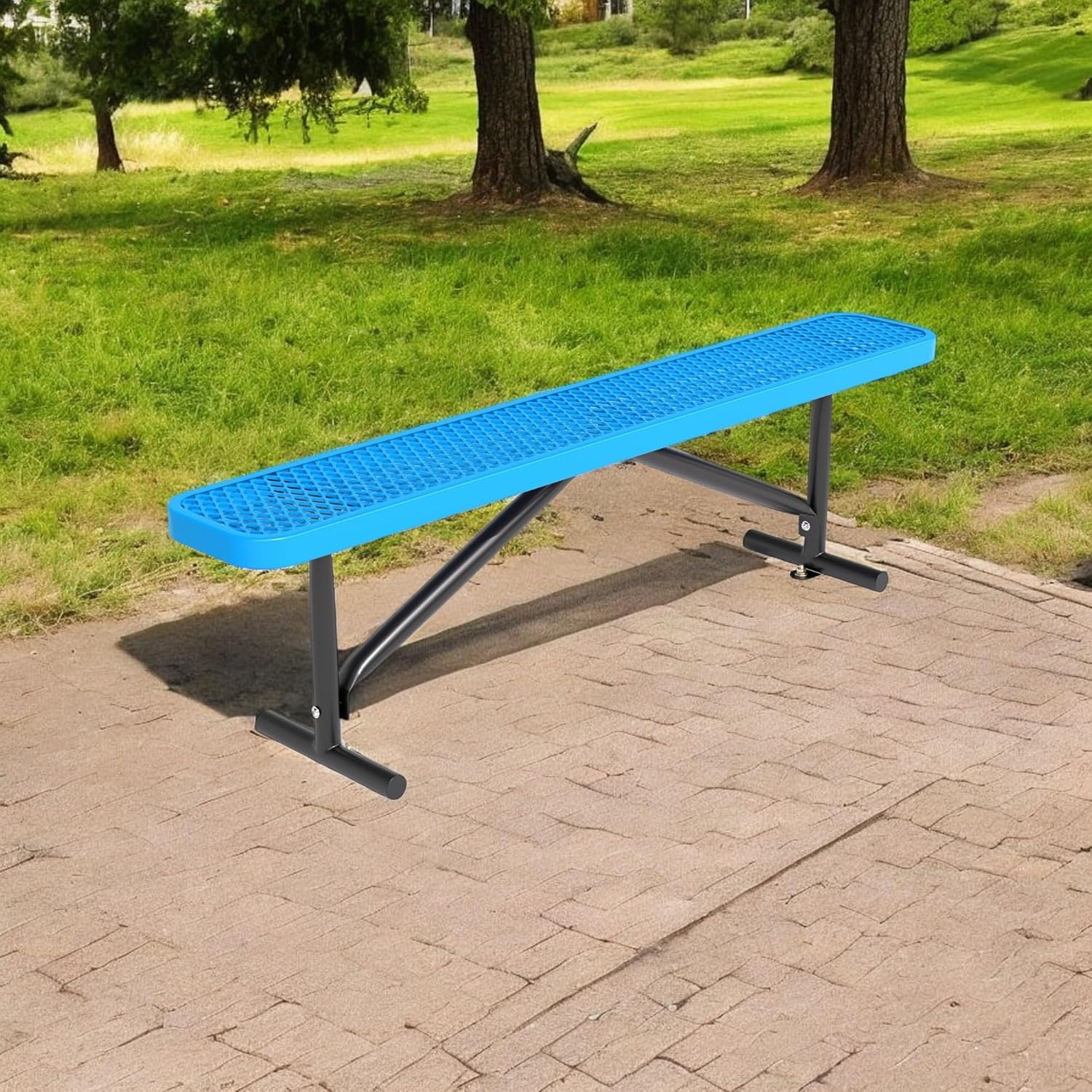 48" L Outdoor Steel Flat Bench, Heavy Duty Metal Park Bench for Outside, Expanded Metal, Commercial Benches Mesh Bench for Shopping Mall, Store, Lawn, Park, Patio, Deck, Garden (Blue, 6FT)
