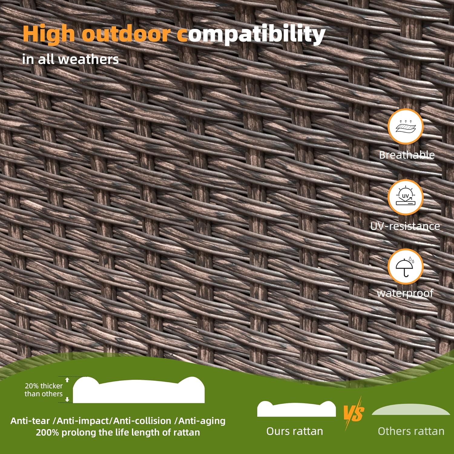 - WEATHER-RESISTANT: Outdoor patio furniture set with durable rattan wicker construction and rust-resistant steel frame ensures long-lasting outdoor use in various weather conditions