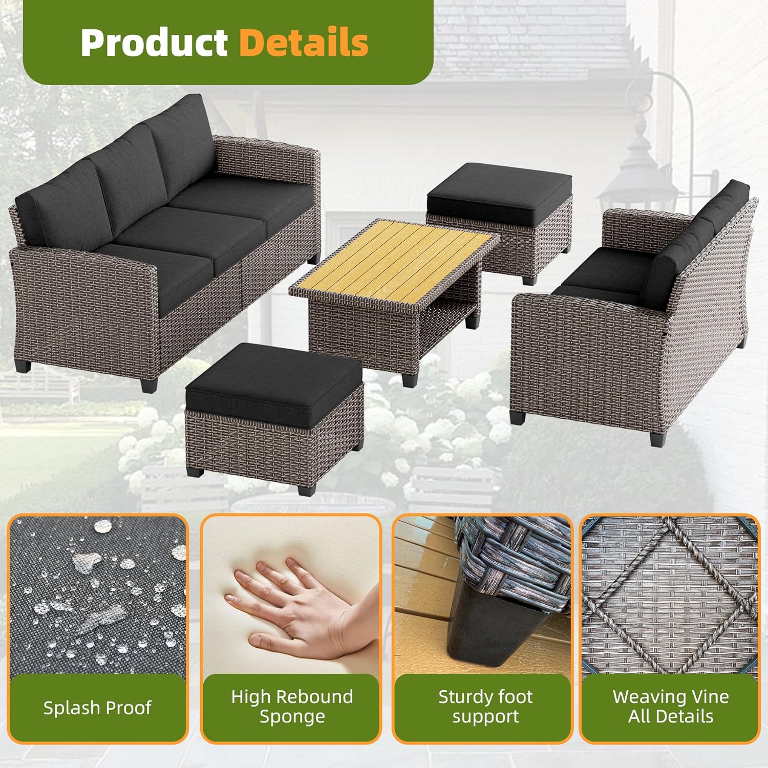 - VERSATILE ARRANGEMENT: The uniquely designed backrest of the sectional outdoor furniture is more ergonomic, allowing you to sit for long periods without feeling tired. It is easy to install and comes with detailed instructions and a responsive after-sales team.