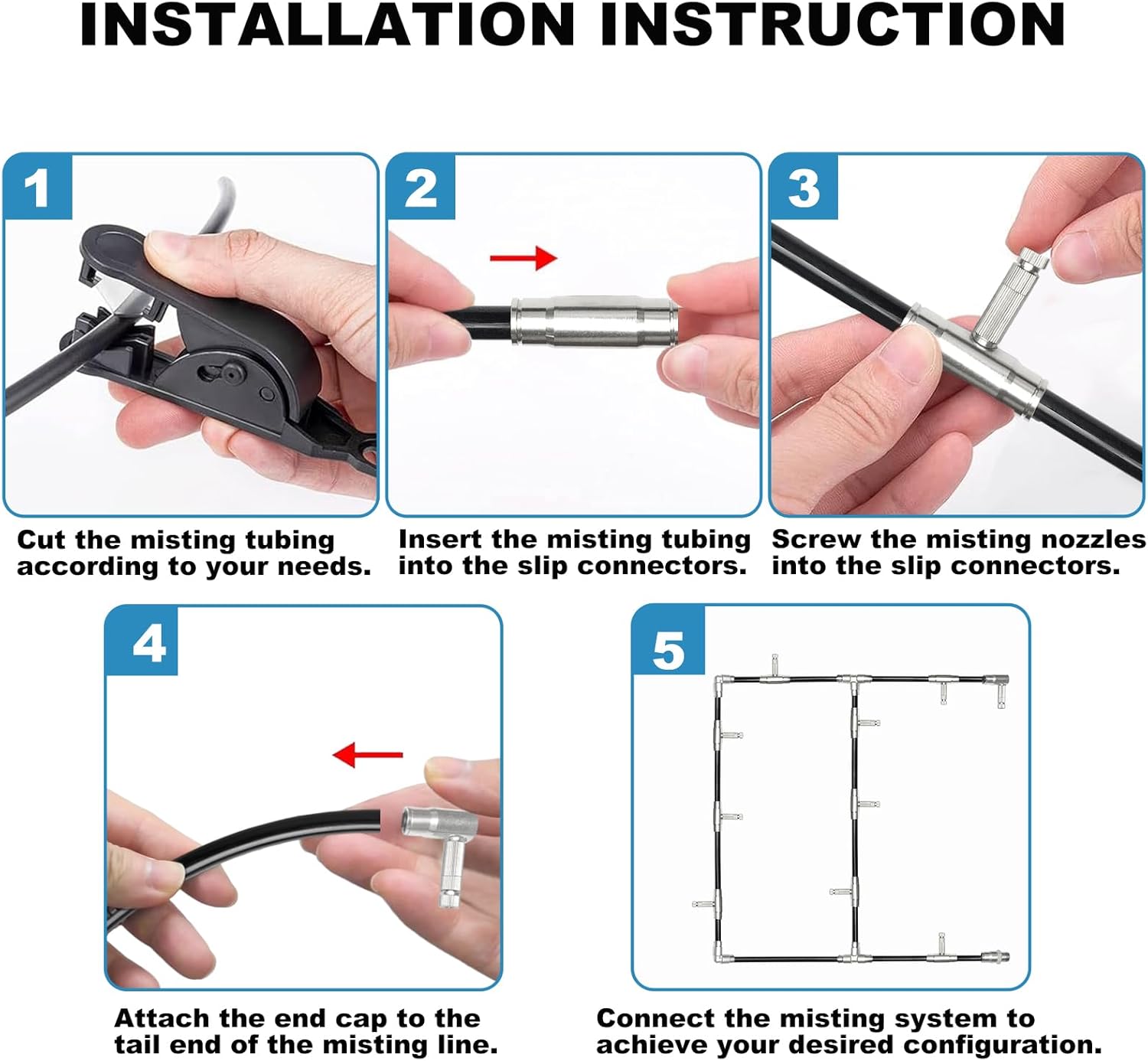 - 【Complete Misting Solution】 This kit includes 11 precision misting nozzles and 16 durable slip connectors, giving you all the essential components for a fully functional outdoor cooling setup or easy replacements.