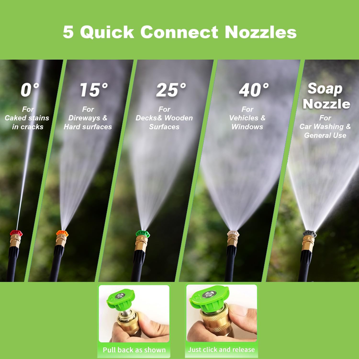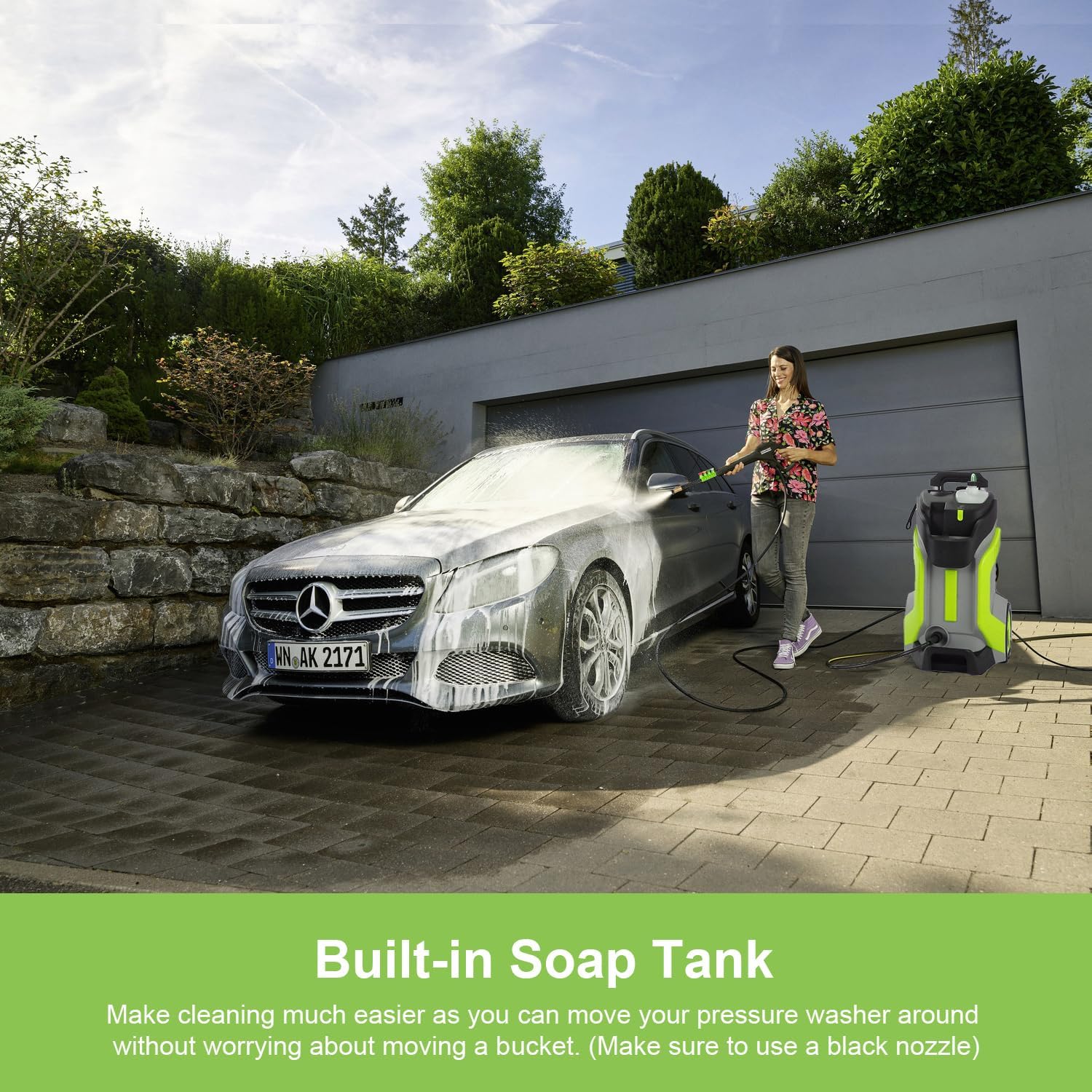 - UPGRADED ACCESSORIES: The Commowner portable pressure washer 2.0 comes with top-of-the-line accessories for a thorough cleaning experience; Navigate with ease using the 33-foot real rubber hose, choose from 5 QC nozzles (0°, 15°, 25°, 40°, soap) for different cleaning needs, and enjoy additional features like the 500ml detergent tank, metal lance, spray gun, cleaning pin, welcome guide and 20-foot electric cord