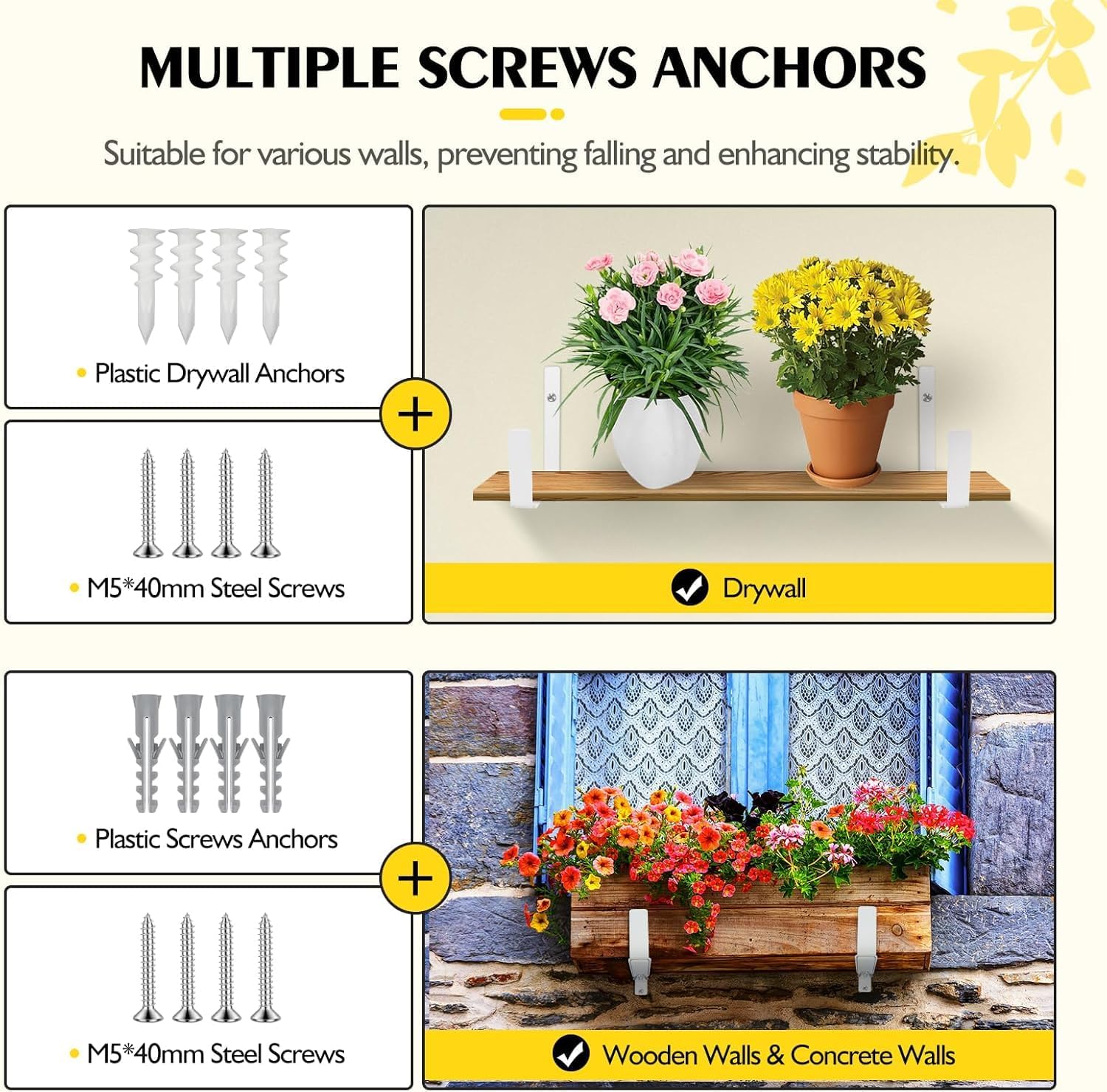 - Multiple Mounting Options: With two types of screws included, our window planter box brackets can be securely installed on wooden furniture, brick walls, or even gypsum board walls, providing flexibility for various surfaces