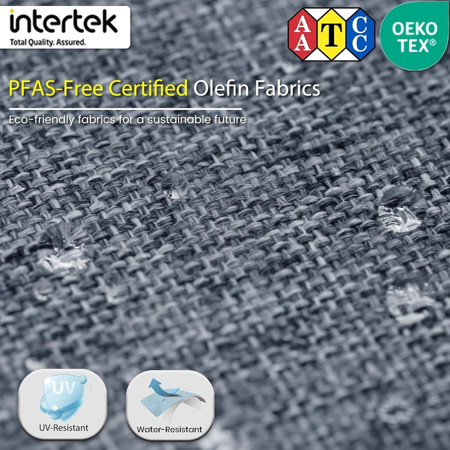 - Innovative Renewable Fabric: Crafted from eco-friendly Olefin, these cushions feature Intertek-Certified PFAS-Free fabric, ensuring UV resistance and no harmful per- and polyfluoroalkyl substances. Enjoy a comfortable, environmentally safe seating experience without compromise