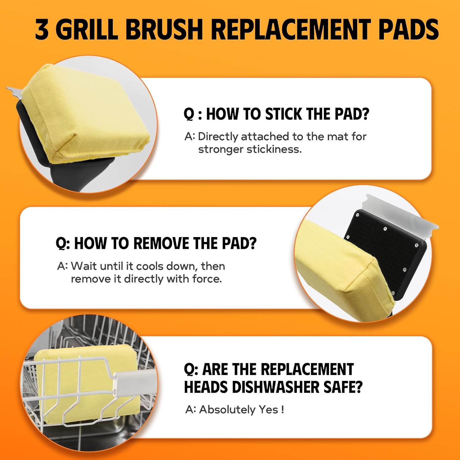 - ERGONOMIC AND FUNCTIONAL: Not only is this grill cleaner brush free of bristles, and it's also designed with your comfort in mind. It also comes with 3 replacement pad, ensuring it lasts through many grilling seasons