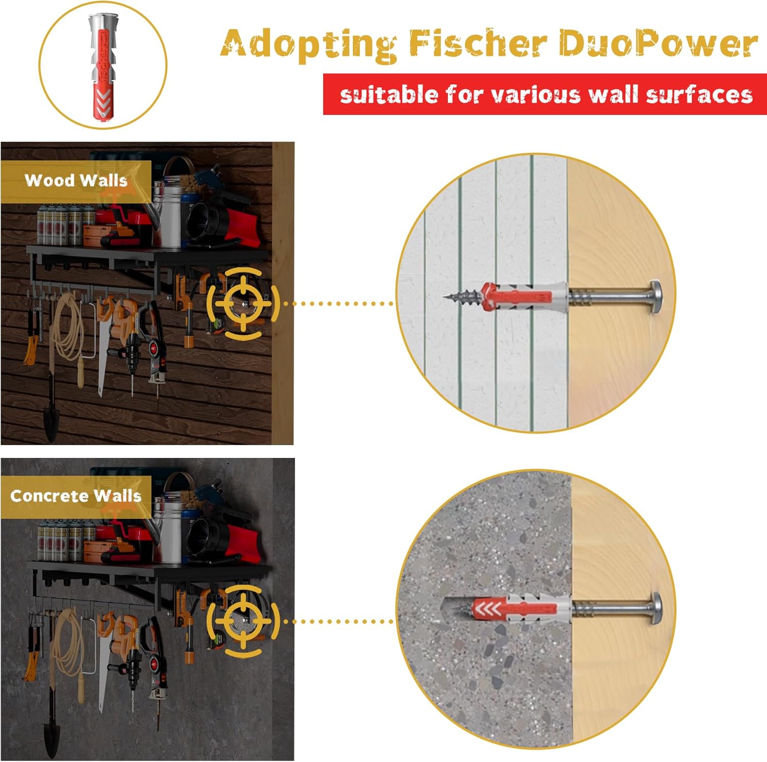 - Space-Saving & Efficient Organization:This wall-mounted power tool organizer maximizes unused wall space, transforming it into a compact and clutter-free storage area. Keep your power and handheld tools neatly displayed, easily accessible, and within arm’s reach—combining practicality with a clean, decorative look for your workspace