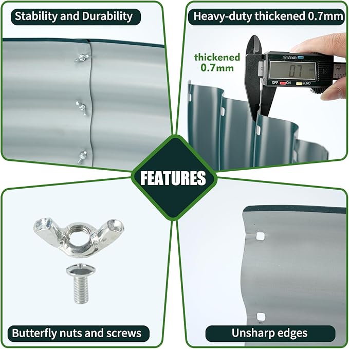 - Durable Construction: The XGMDD Round Metal Raised Garden Bed is crafted from sturdy, painted metal in 0.7mm thick, ensuring long-lasting durability and resistance to weather elements, perfect for outdoor use.