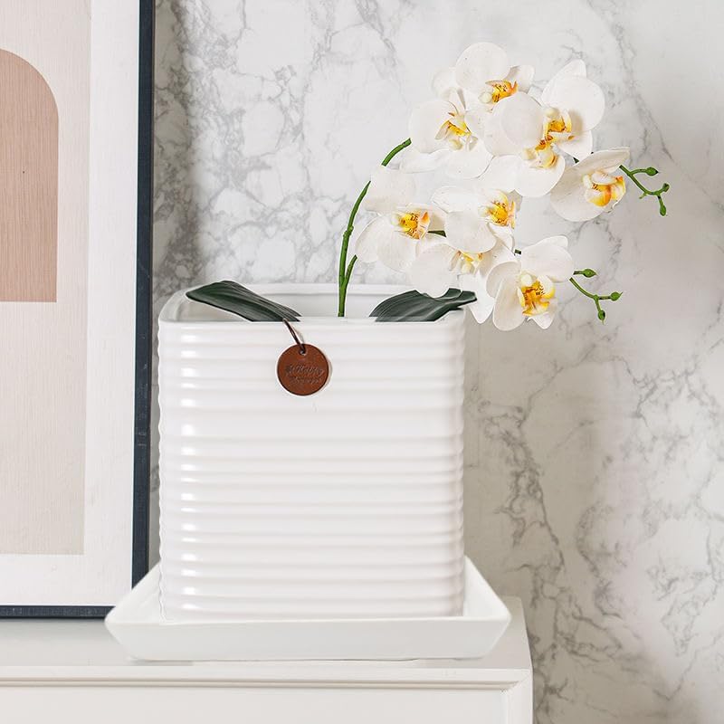 - 4.[ Perfect match for your flowerpot and interior decoration ] Your plant deserves a more attractive plant saucer. This square ceramic Flower pot drip trays is compatible not only with square flower pots but also with round ones. With this Potted plant trays for indoor and outdoor , your flower pots and plants will look more charming than if placed in a plastic plant saucer.