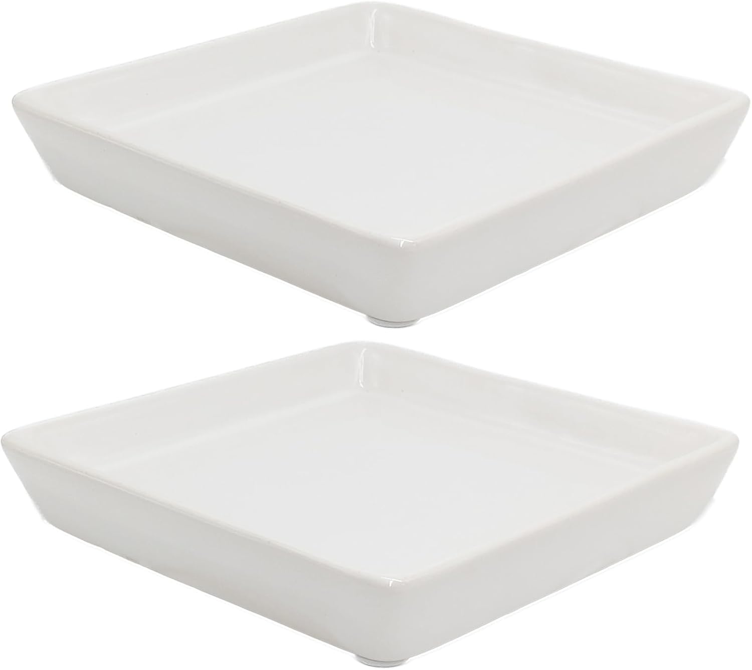 Square Plant Saucer 10 Inch 2 Pack,Plant Trays for Pots, White Ceramic Plant Saucers for Indoors Outdoors, Plant Drip Tray 4 6 8 10 12 14 Inch