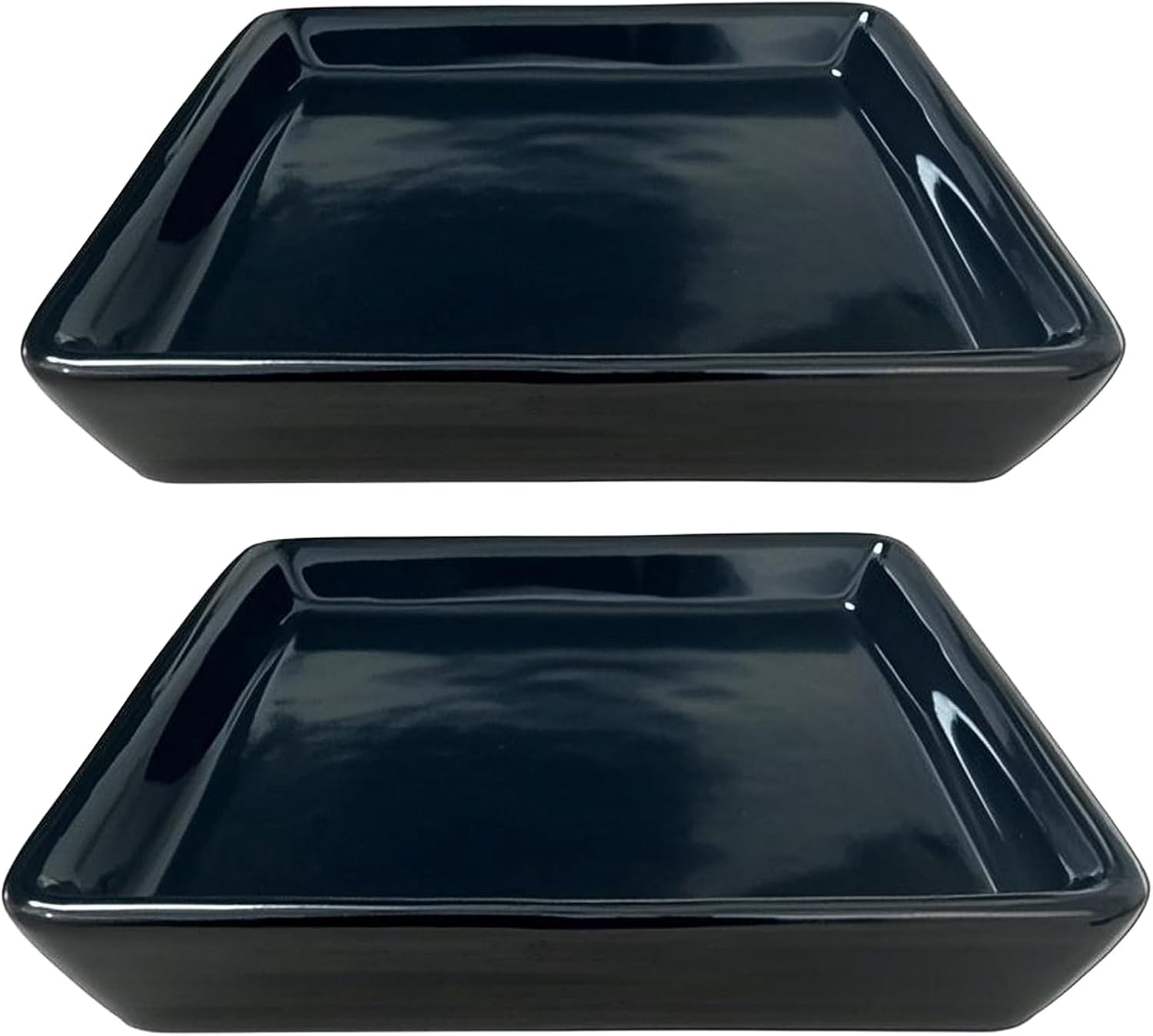 Square Plant Saucer 8 Inch 2 Pack,Plant Trays for Pots, Black Ceramic Plant Saucers for Indoors Outdoors, Plant Drip Tray 4 6 8 10 12 14 Inch