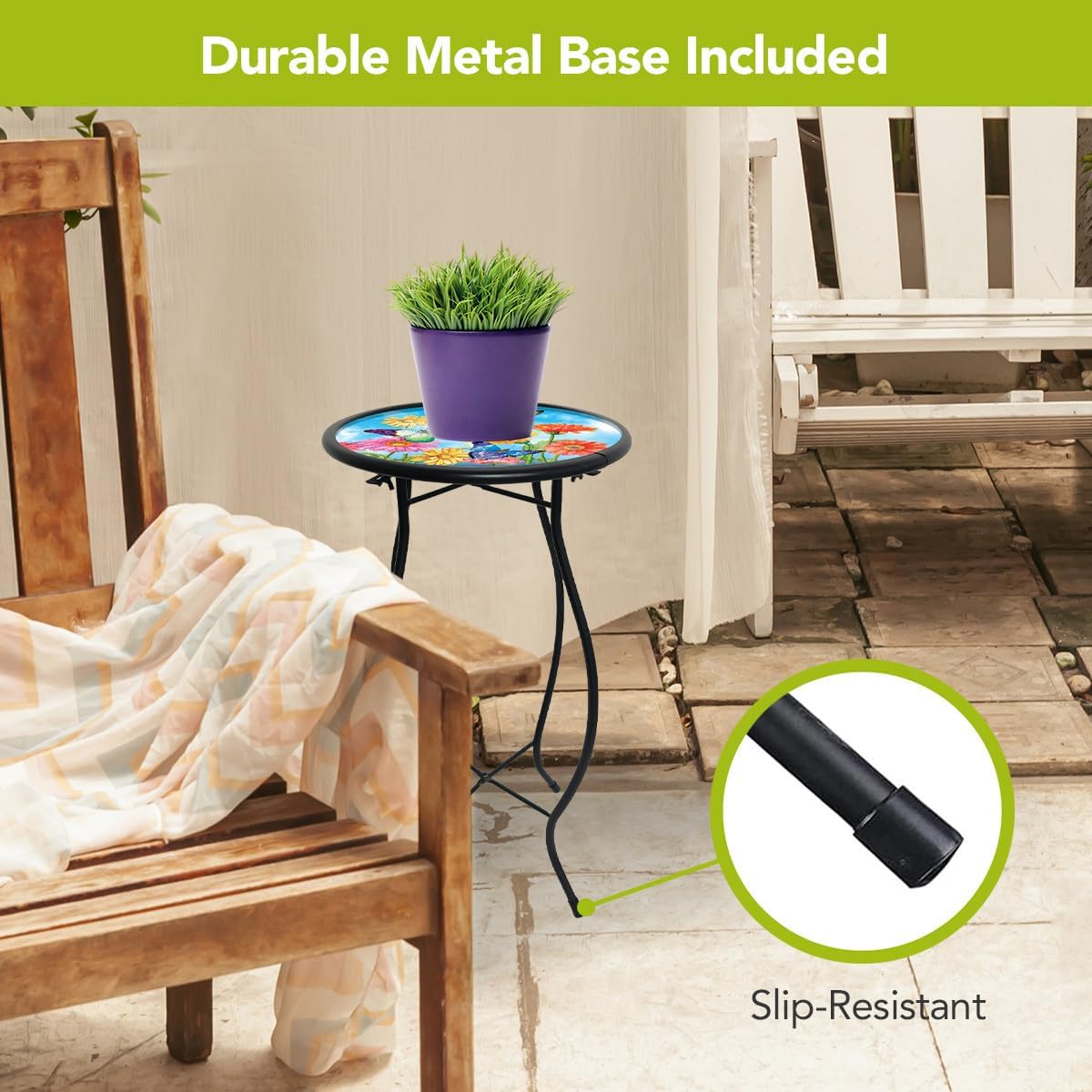 - Printed Glass Top Catches Sunlight Enhancing Porch or Patio