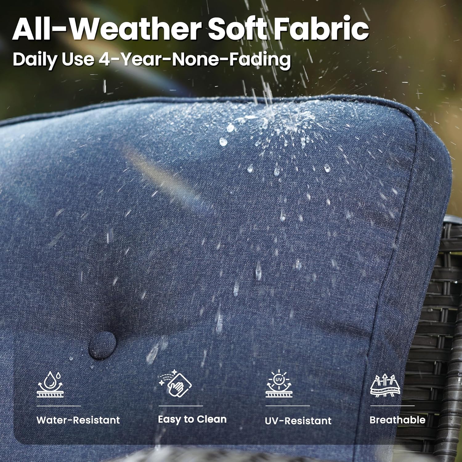 - Comfy Thick Cushion: Made of all-weather high-density waterproof coating fabric and upgraded thickened cushions, it has high resilience, good breathability, wear resistance and tear resistance. The cushion cover is zippered and can be removed for washing, and simple and convenient daily maintenance
