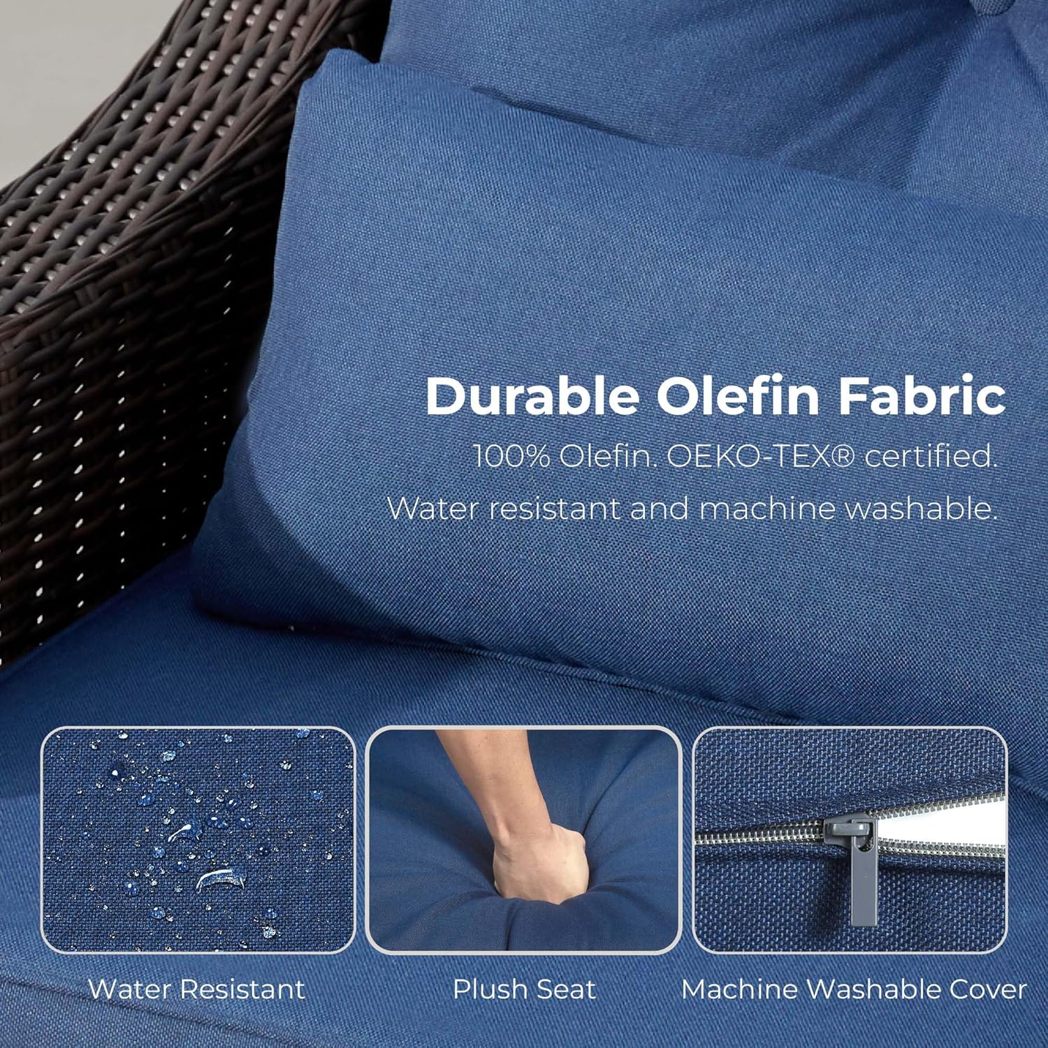 - Easy to Clean: The water-resistant 100% Olefin cushion covers are easy to maintain. Simply spot-clean with mild soap and water for regular care, or machine wash on a cold cycle for deeper cleaning. For protection during harsh weather, store the cushions under cover temporarily. Note: The product’s color may vary under different lighting conditions. For accurate color representation, always refer to the actual product.
