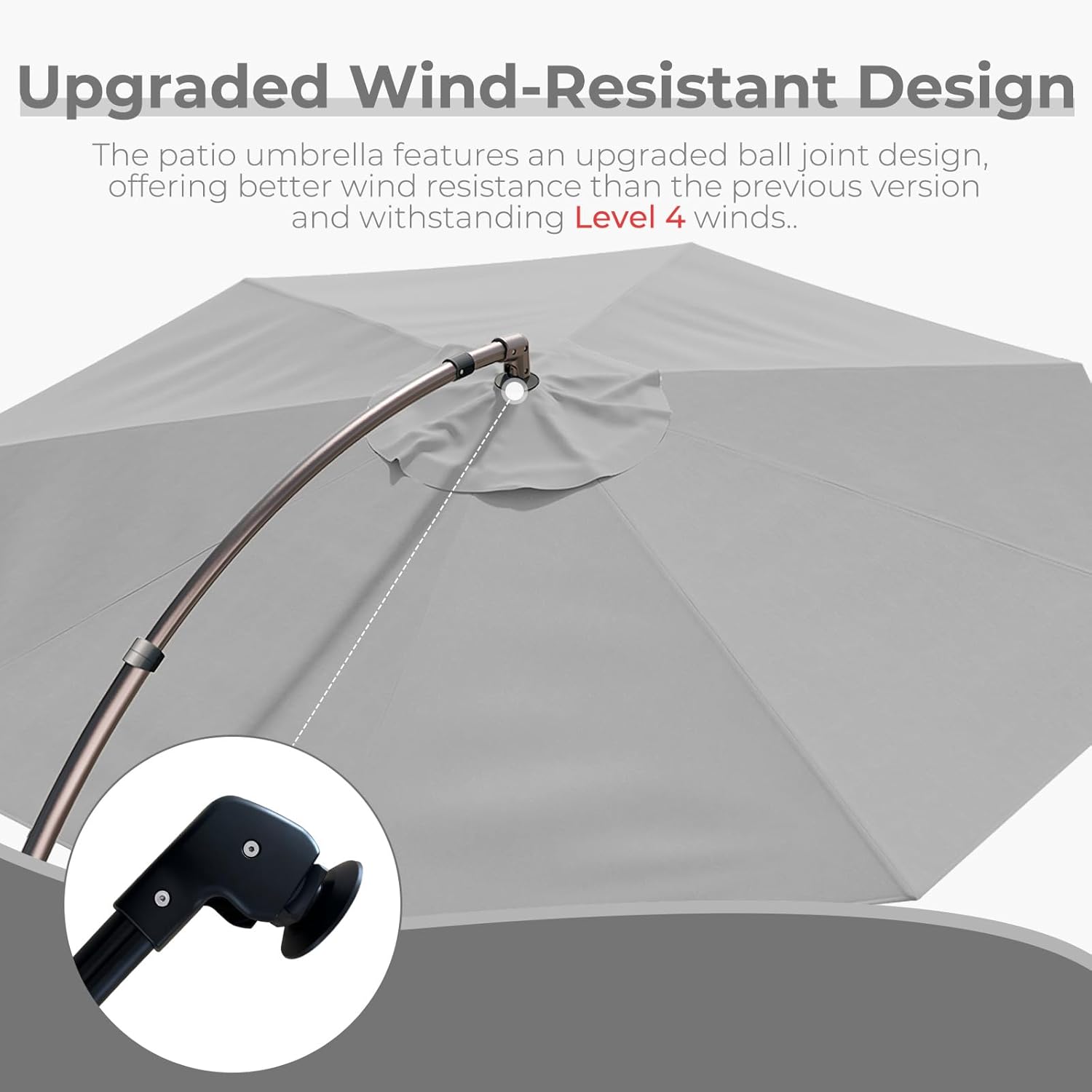 - STURDY STEEL RIBS: Enjoy unparalleled stability with our premium offset umbrella, boasting 8 heavy-duty ribs that ensure exceptional stability even in windy conditions