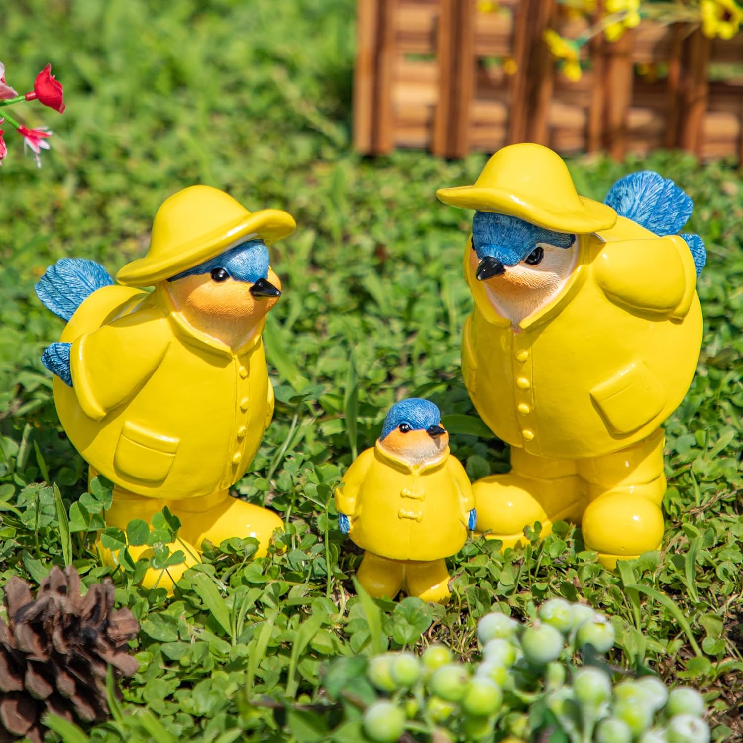 - Durable material: Measure dad 6.5 * 3.1 inches mom 6.3*2.7inches poppy 3.1*1.3inches, made of high quality resin, weather resistant