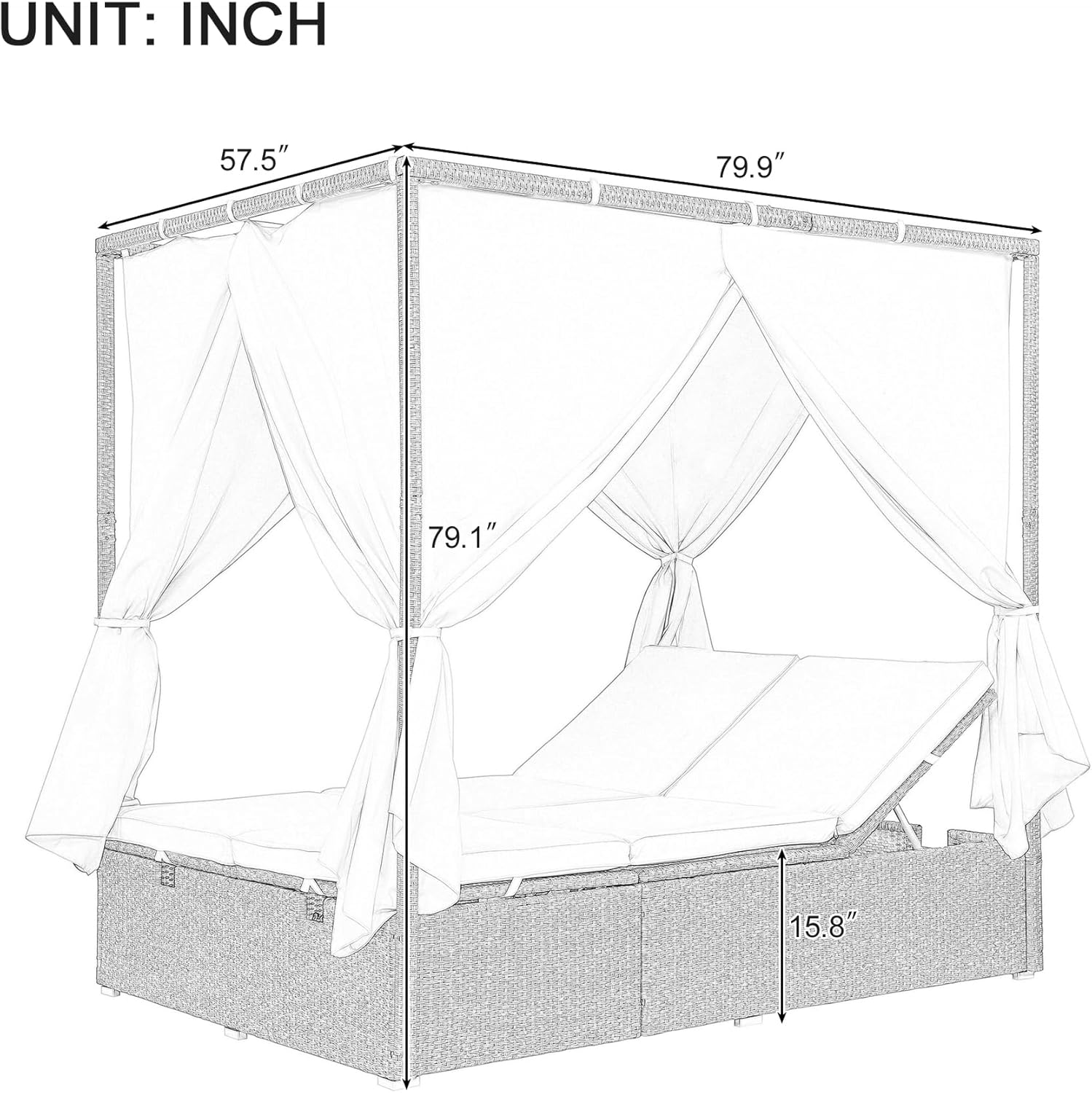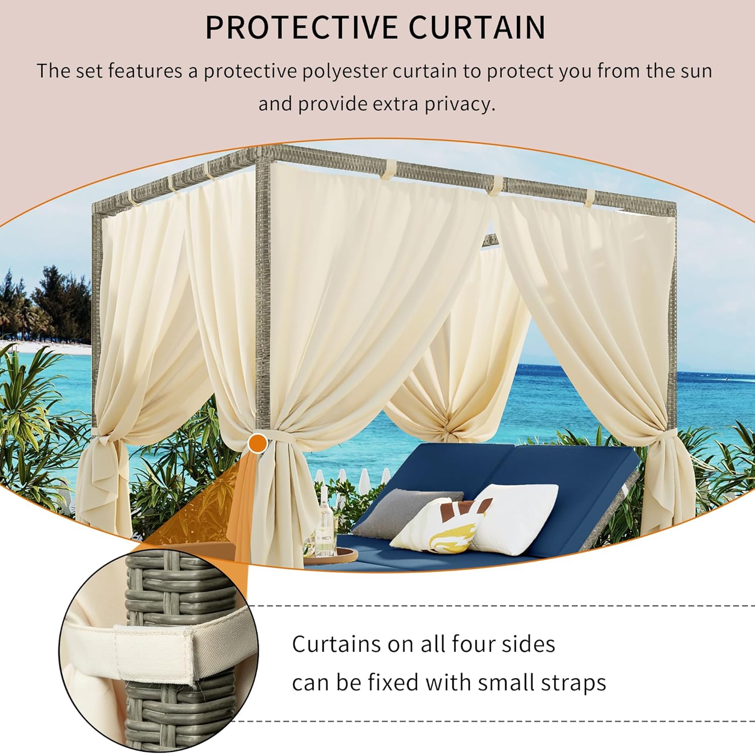 - Elegant & Private Outdoor Furniture:This chic rattan sunbed features both side and overhead curtains, offering a perfect combination of shade and privacy. It's an ideal addition to your balcony, garden, backyard, or poolside, providing comfort for 2 to 6 people to relax and enjoy quality time together.