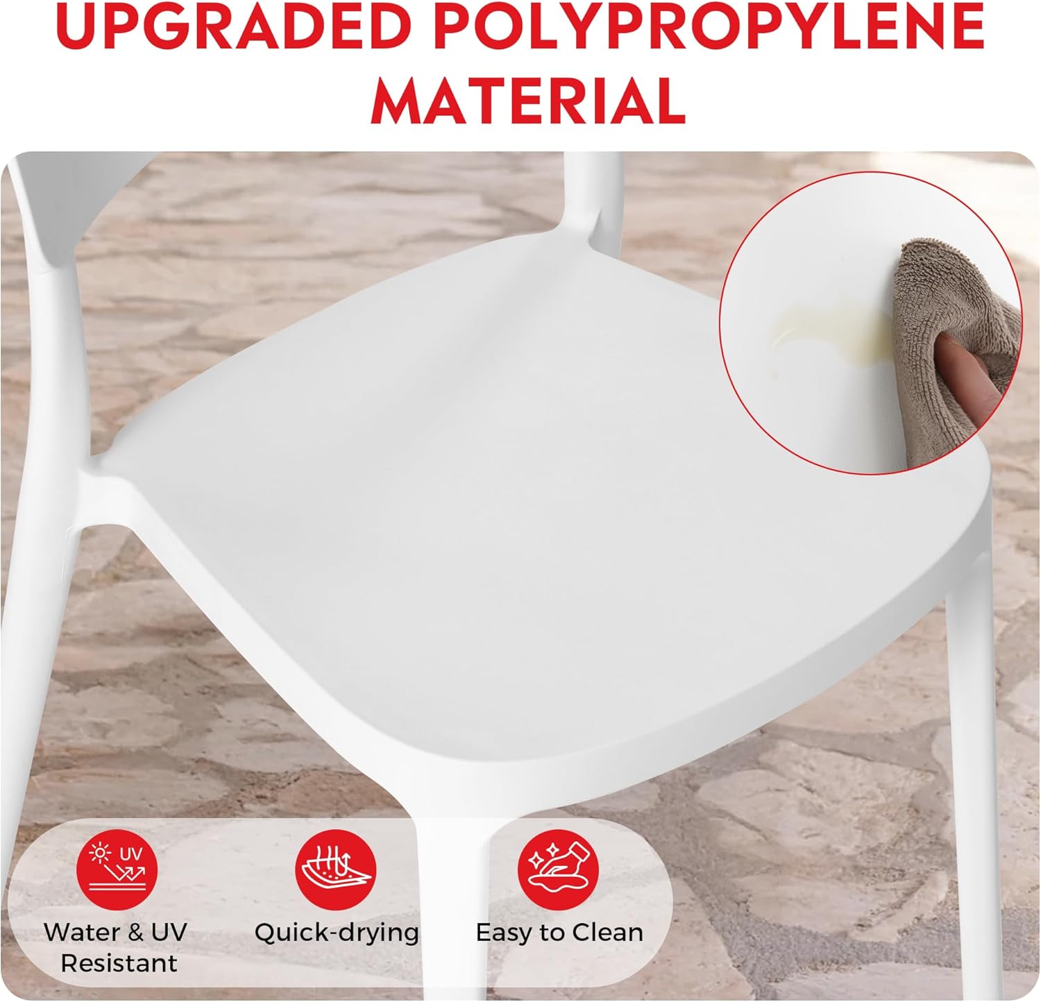 5-Piece Outdoor Dining Set, HDPE Patio Square Bistro Table and Stackable Chairs Sets for 4, Patio Furniture All Weather for Backyard Poolside, White