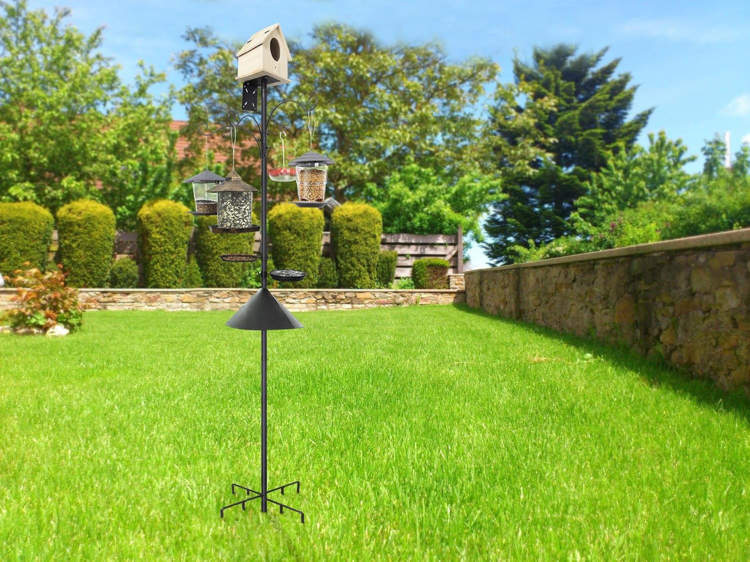 - 【Built-In Bath & Feeding Tray】Includes detachable bird bath (holds water) and mesh food tray (for seeds/fruit). Feed and attract birds in one spot without buying extra accessories. Easy to clean, quick to refill