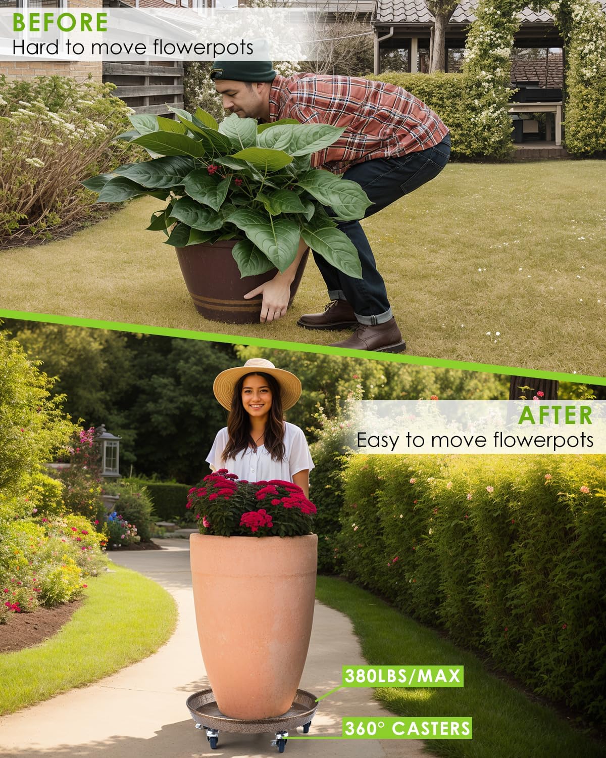 - Widely Used Indoors/Outdoors-plant roller has a good load-bearing capacity, not only can be used as a plant cart, but also can help you carry heavy objects, such as furniture, wine barrels, free-standing stoves, etc. Ideal for gardens, yards, courtyards, outdoor environments. Make your relocation very easy!