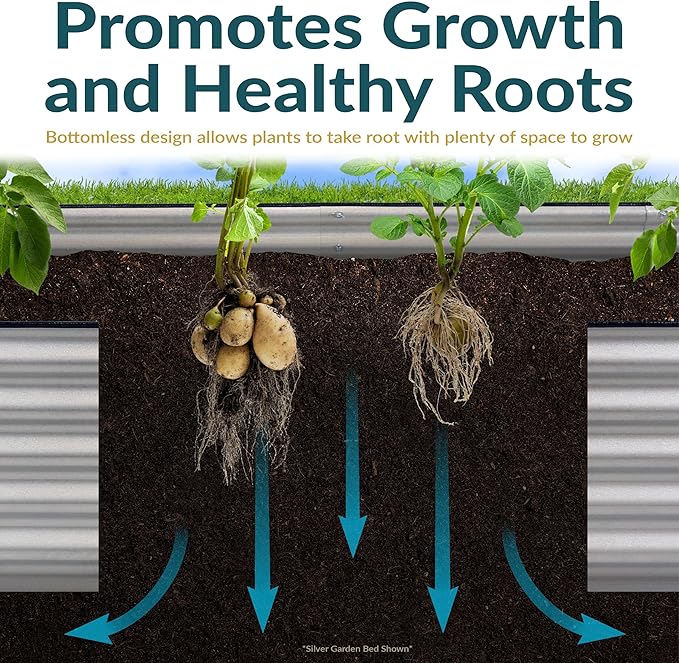 - IMPROVED GROWING CONDITIONS: This sturdy metal raised garden bed offers better growing conditions for vegetables and flowers. Raised garden beds allow anyone to choose the right soil for specific plants. Plus, the bottomless design ensures proper soil drainage.