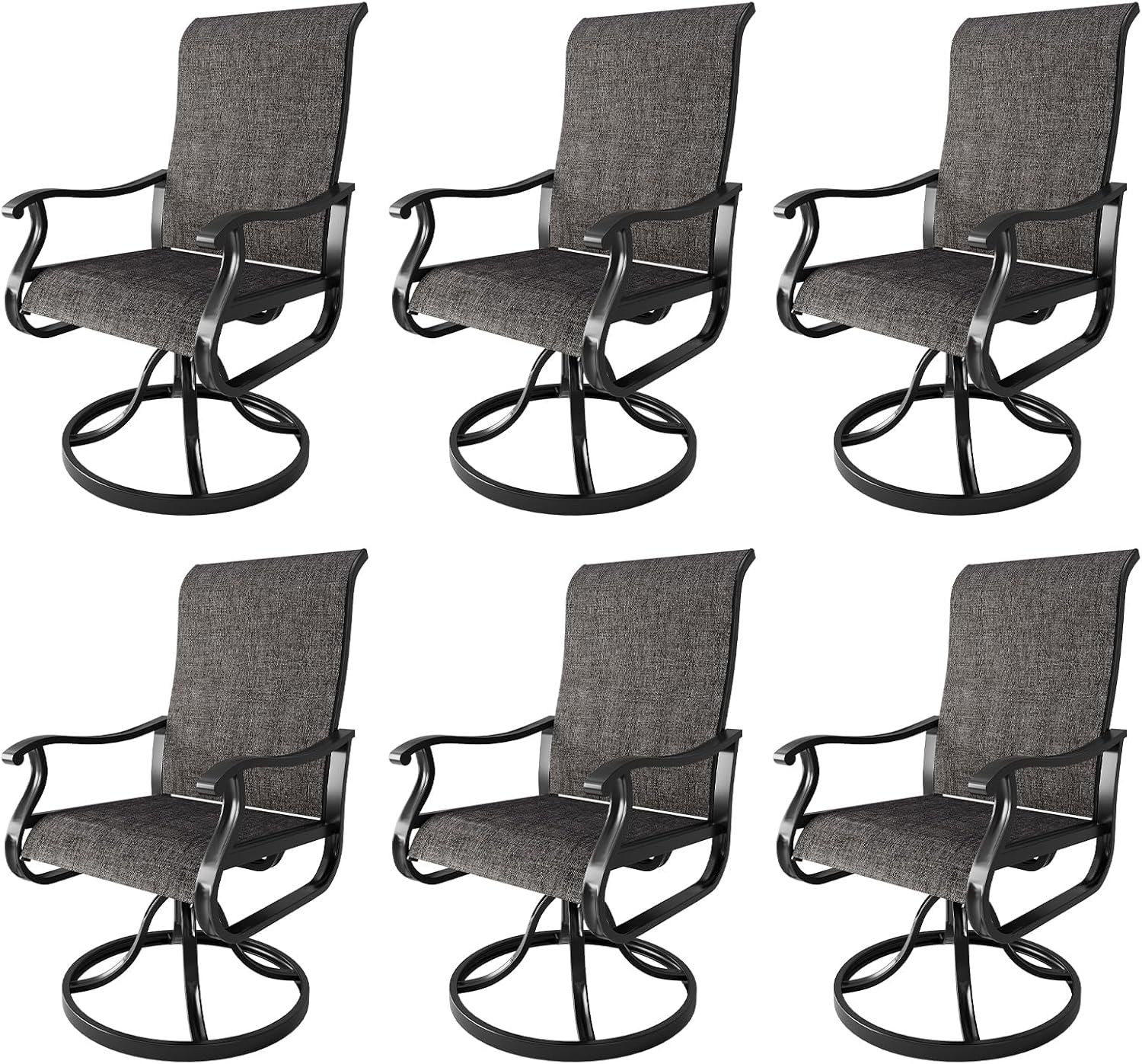 Amopatio Patio Swivel Chairs Set of 6, Outdoor Swivel Rocker Dining Chairs with All Weather Textilene High Back & Metal Frame, for Backyard Deck Lawn Garden (Dark Grey)
