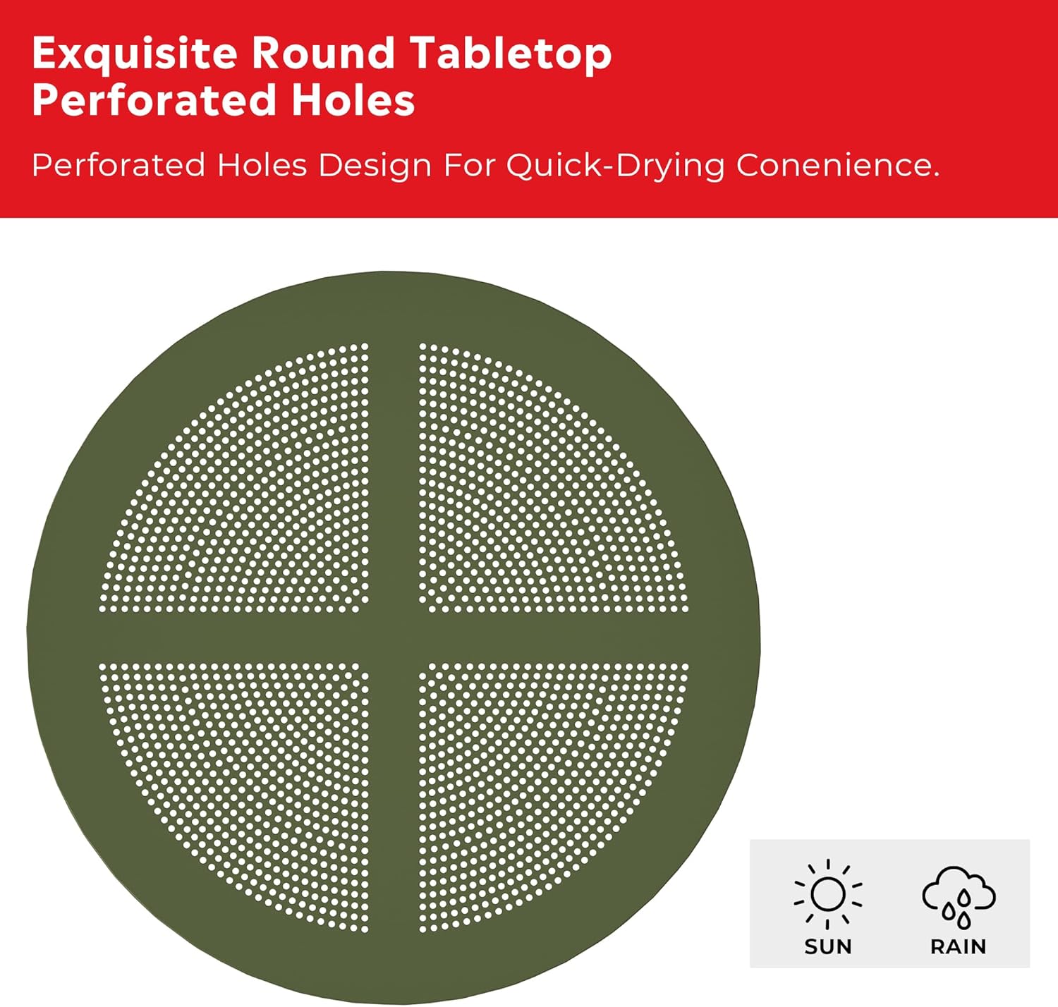 Dining Set for 4, HDPE Patio Round Dining Table and Stackable Comfortable Dining Chair, Outdoor Small Patio Furniture Set All Weather for Backyard Porch Poolside, Olive Green