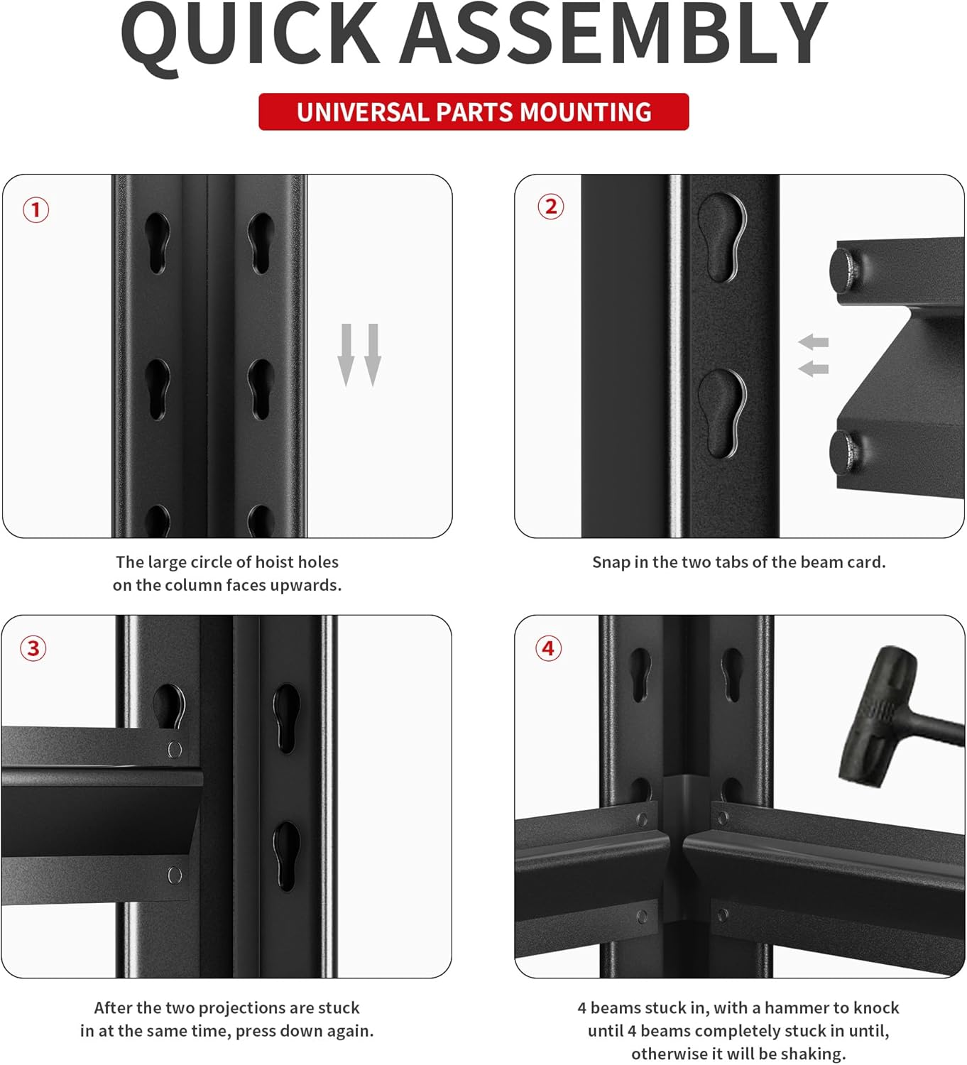 - 🍖【Easy Assembly】Setting up your garage shelving unit has never been easier. With simple instructions, the heavy-duty garage shelf requires no special tools for assembly. Perfect for DIY enthusiasts looking for a storage shelf solution that is quick and hassle-free.
