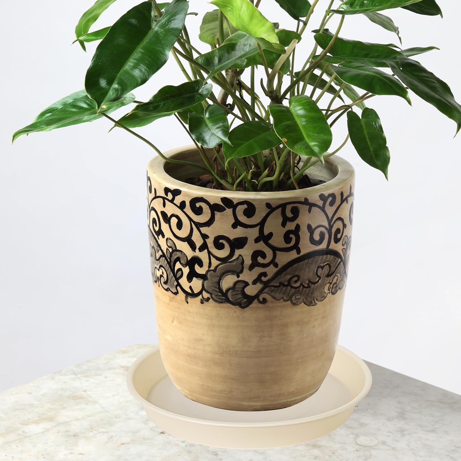 - SIMPLE STYLE MODERN DESIGN - Plastic pot drainage tray 14 inch are designed with matte finishing exterior in soft, round shapes, bringing out a modern minimalistic styled, plant saucers for indoors. And smooth glossy inner finish for easy cleaning. Great for replanting, and for flower plant lovers. white planters for indoor plants.