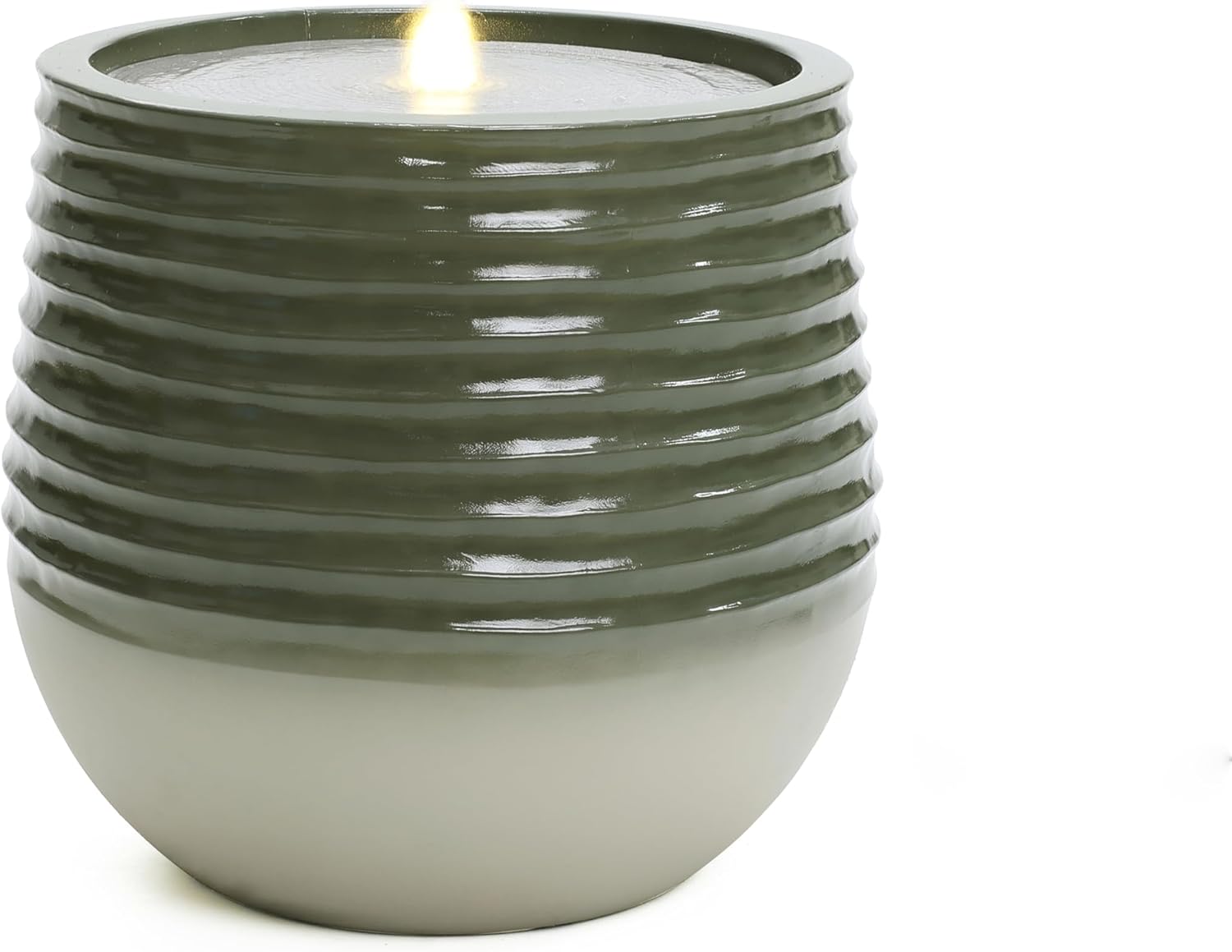 - Premium Material: Made from high-quality, weather-resistant resin, this lightweight yet durable garden water fountain outdoor replicates the elegant look of glazed ceramic pottery, offering a modern, high-end aesthetic without the fragility of real ceramic.