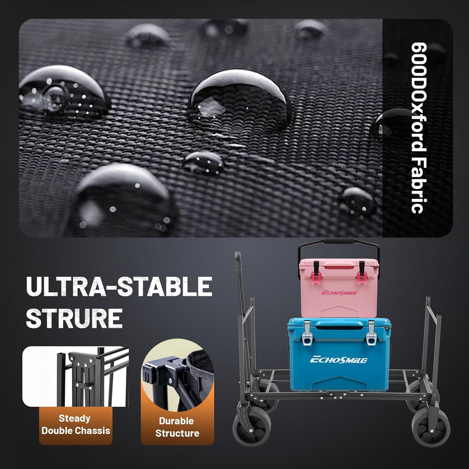 - 【HIGH QUALITY】Our beach wagons are designed with durability and sustainability in mind by utilizing a high-strength steel frame and durable 600D Oxford cloth. The solid frame construction won't buckle or warp.EchoSmile wagons offer the perfect combination of performance, style and build quality to bring ease and pleasure to wagon users around the world.